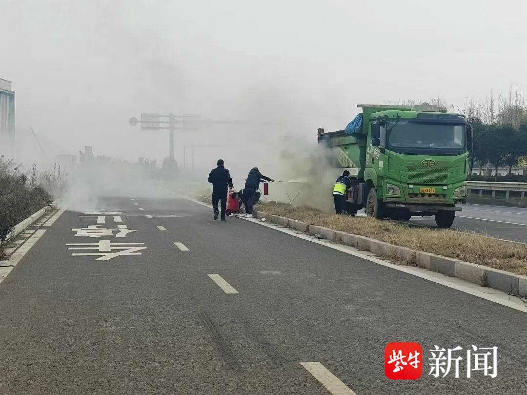 经初步了解,该起火车辆为一辆空载重型自卸车,火情起因是车辆线路老化,进而引发后尾灯部位自燃,火焰很快就蔓延至后轮胎。随着火势不断逼近油箱,现场危险系数急剧升高。为了尽快阻断火势扩大,急救驾驶员武心浩当机立断,火速奔向附近加油站,成功借到手提灭火器和推车式灭火器。