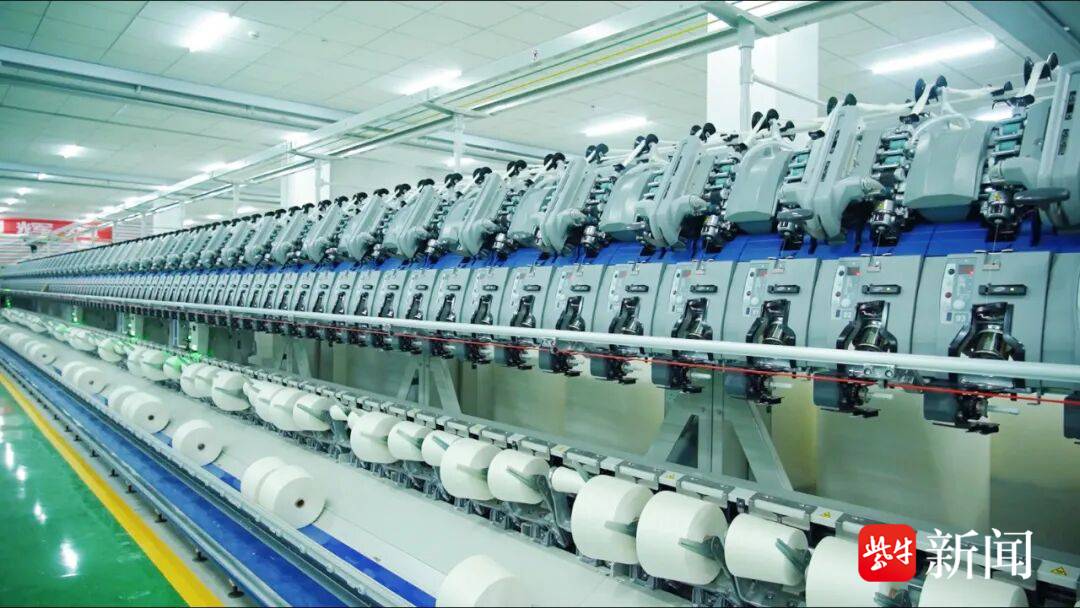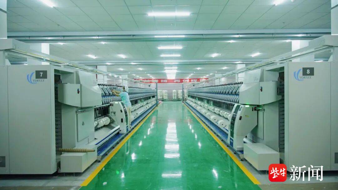 近日,盐城射阳港经济开发区寒意渐浓,但江苏京奕绿能新材料科技有限公司生产车间内暖意融融、机器轰鸣,一派热火朝天的生产景象。一排排国际领先的涡流纺纱机高速运转、吞丝吐缕,自动化流水线有序产出一卷卷高品质纱线,一幅“智能+绿色”的产业升级画卷正生动铺展。
