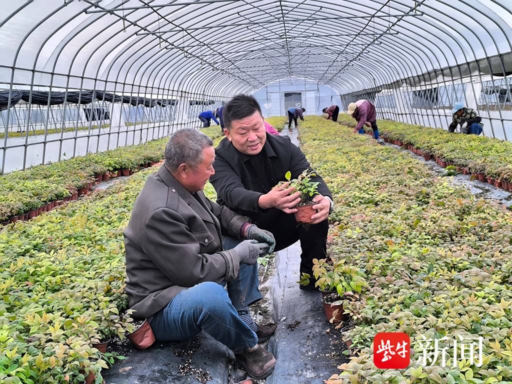 入冬后,火焰南天竹遇持续低温后叶片全部变红,显得很是喜庆,搭配红盆作为年宵花销售受到市场欢迎,就这样点燃了富民强村的“新引擎”。
