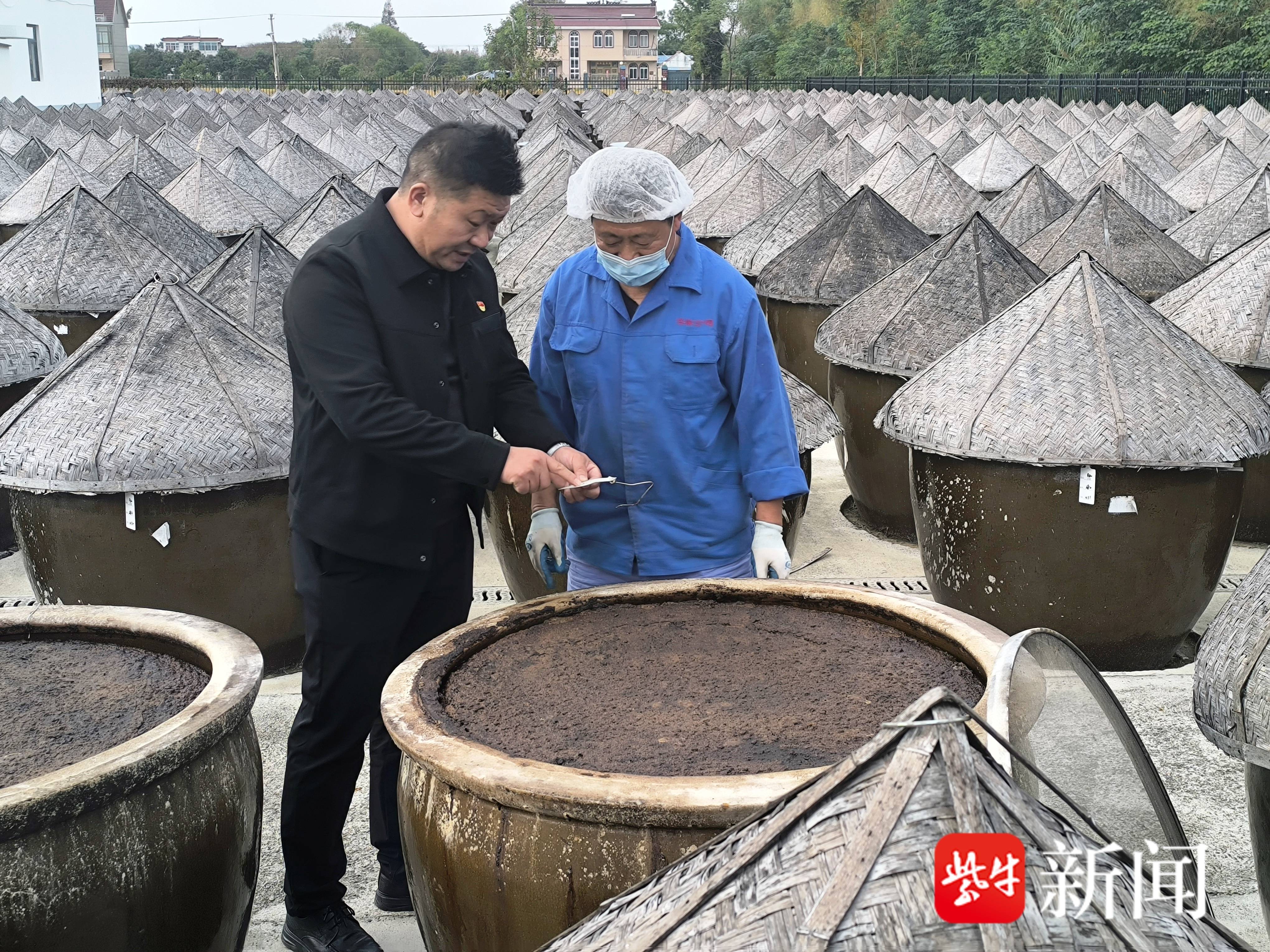 千余只半人高的酱缸整整齐齐地排列摆放在一起……这是沿河村的一道特殊景观。村里“支云酱园”生产的传承非遗技艺的“支云”牌如皋老酱油,年产量达到300吨左右。