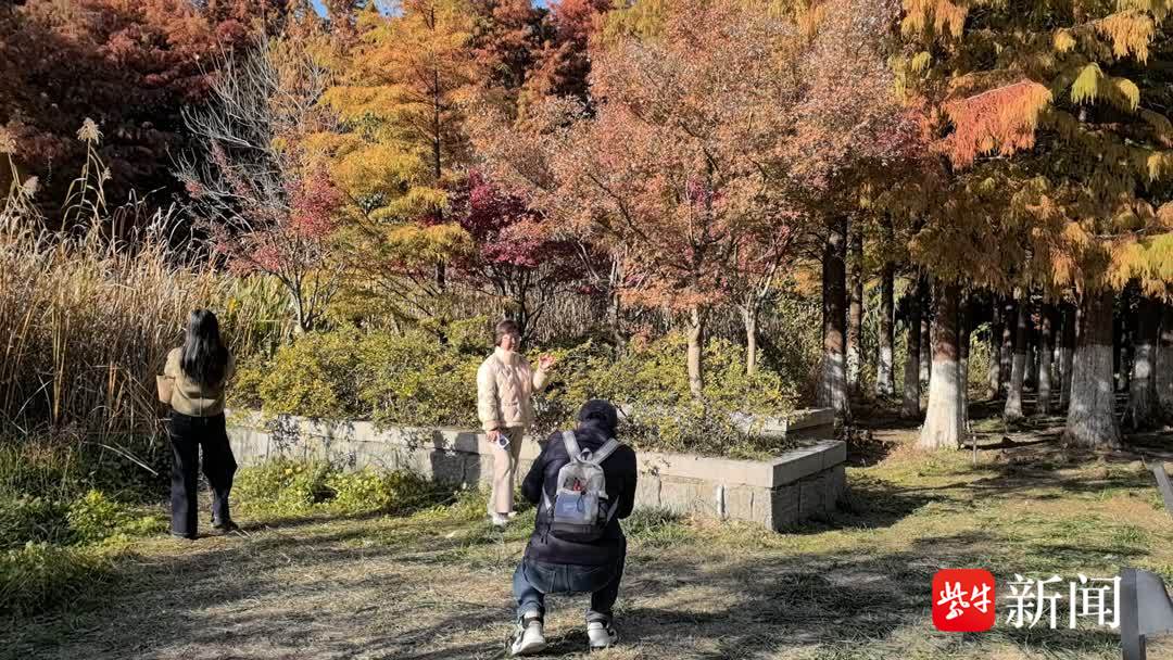 初冬的金山湖景区,成片落羽杉换上赭红盛装,吸引了不少老年摄影爱好者。“以前上班忙得脚不沾地,摄影爱好只能藏在心里。”趁着取景间隙,李阿姨介绍道,退休后时间充裕,她立刻入手专业摄影设备,圆了多年的摄影梦。不远处,舞蹈机构的老师正在拍摄抖音短视频,李阿姨顺势将灵动舞姿与红杉美景一同纳入取景框内。
