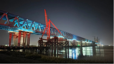 12月9日凌晨,北沿江高铁(沪渝蓉高铁上海至南京至合肥段)崇启长江公铁大桥完成最后一轮桥梁顶推作业,非通航孔桥钢梁与主通航孔桥南边跨钢梁在主桥1号墩实现毫米级精准对接,标志着全桥42轮顶推作业全部完成。
