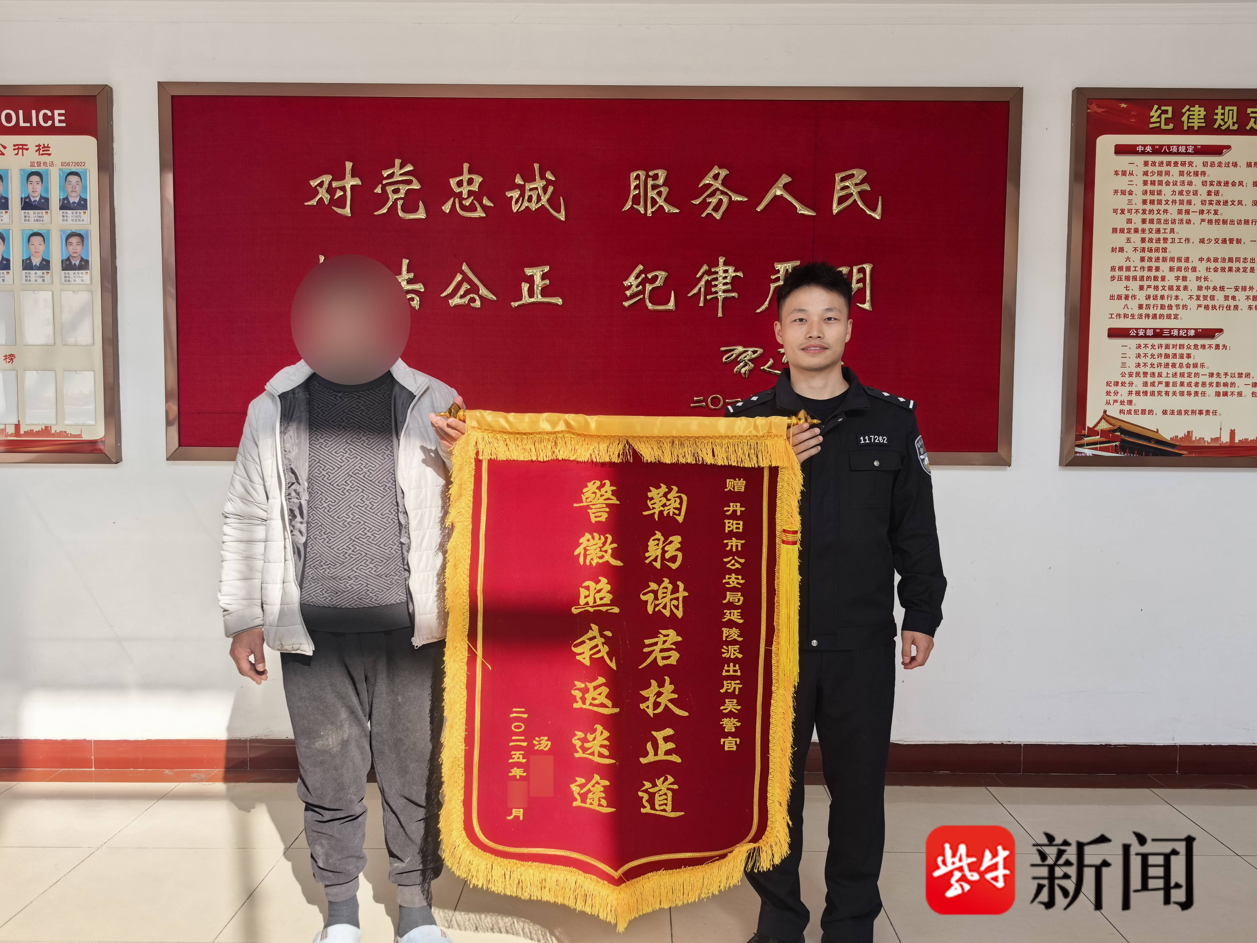 扬子晚报网12月12日讯(通讯员 夏天 邵臻 记者 姜天圣)取保候审期间的犯罪嫌疑人汤某,近日专程来到镇江丹阳市公安局延陵派出所,将一面印有“鞠躬谢君扶正道 警徽照我返迷途”的锦旗送到民警吴玉平手中,以此表达对民警多次谈心帮扶、劝其改过自新并督促其再就业的感激之情。