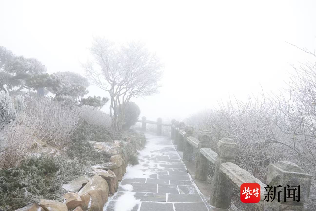 受北方强冷空气东移南下的影响,连云港今日气温骤降,花果山也迎来了2025年冬天的第一场雪,同时也出现了难得一见的雾凇奇观。
