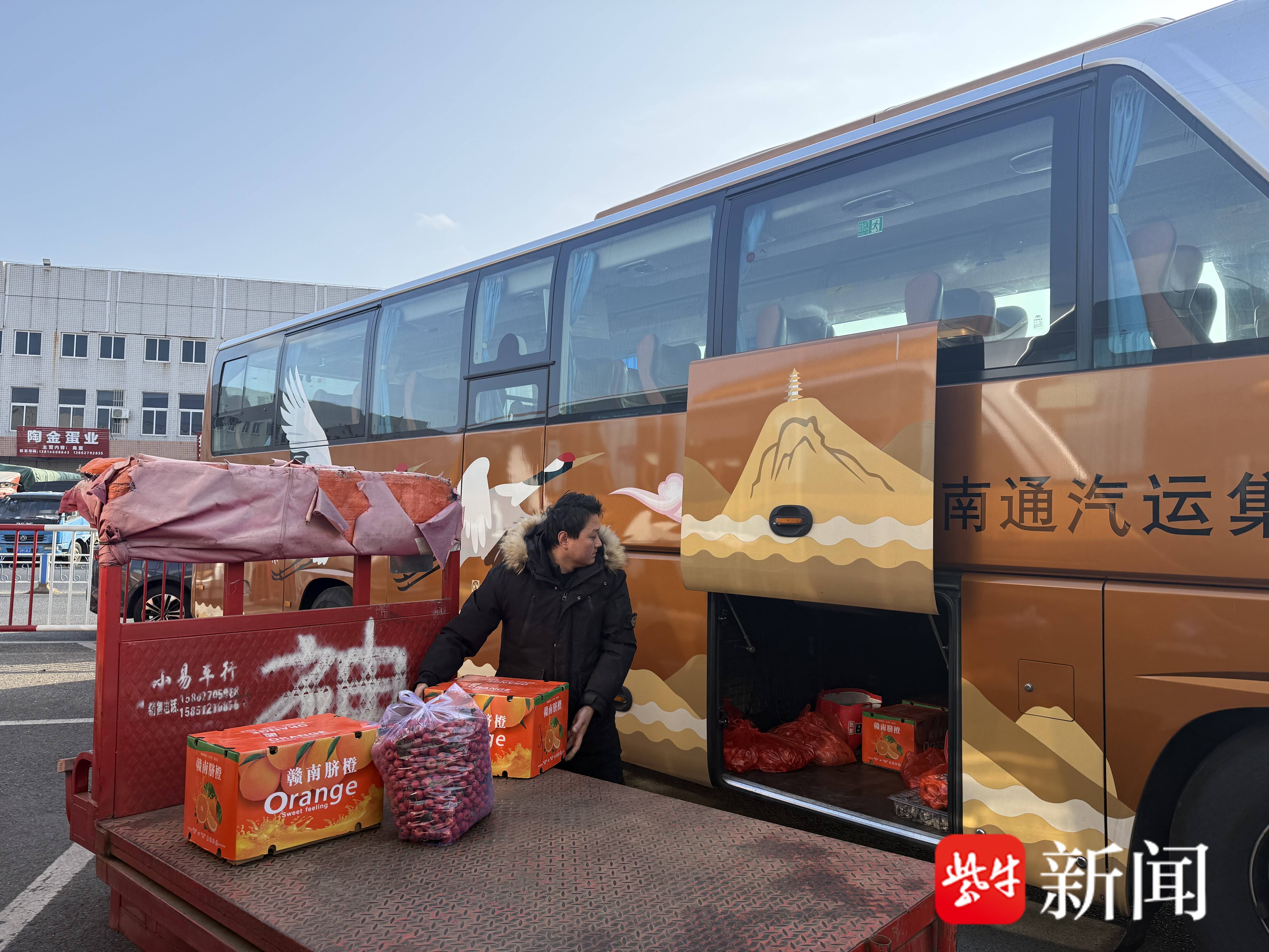 上午,直通车陆续抵达市场。来自海安的蒋先生与朋友结伴而来,他高兴地展示着刚买的牛肉:“牛肉一斤才28块钱,一口气买了十斤,比家门口菜市场便宜近一半!”像他一样,许多市民利用发车前的空隙,在市场内踊跃采购。通州的陆阿姨忙着清点代亲友购买的水果,“批发价很实惠,店里还帮忙送进大巴车,太方便了!”她身边已堆起多箱苹果、砂糖橘、脐橙等。