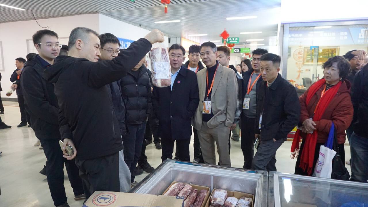 中国肉类协会俱乐部分会会长马广胜与中福(南京)农产品市场副董事长吴进达考察中福市场