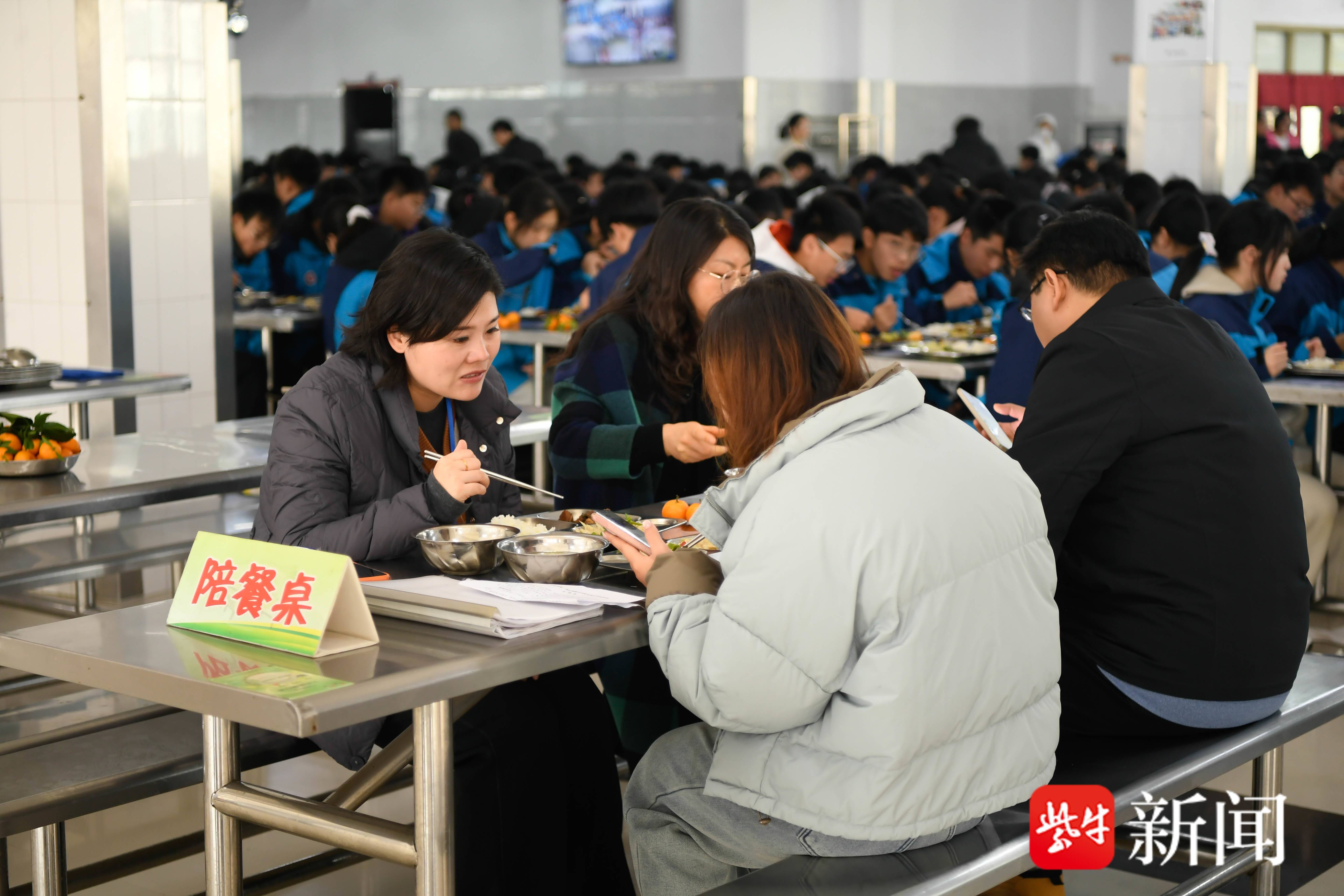 “孩子吃得安心,我们家长更放心!”一大早,家长戈琴佩戴好监督证,与其他家长代表一起,在海陵中学食堂里参与了从称菜、洗菜到炒菜、分菜的全过程监督,并在午餐时段与学生同坐一桌,亲口品尝了当天的饭菜。“亲眼看到每一道工序都这么规范、透明,和孩子一起吃上热腾腾的营养餐,这种参与感让我们特别踏实。”戈琴感慨道。像她这样通过常态化的“家长陪餐”“你我同查”活动走进校园后厨的家长,如今在海安各校已成为一道寻常的风景线。家长深度参与,不仅增强了监督力量,更织密了家校共育、社会协同的校园餐“共治网”。