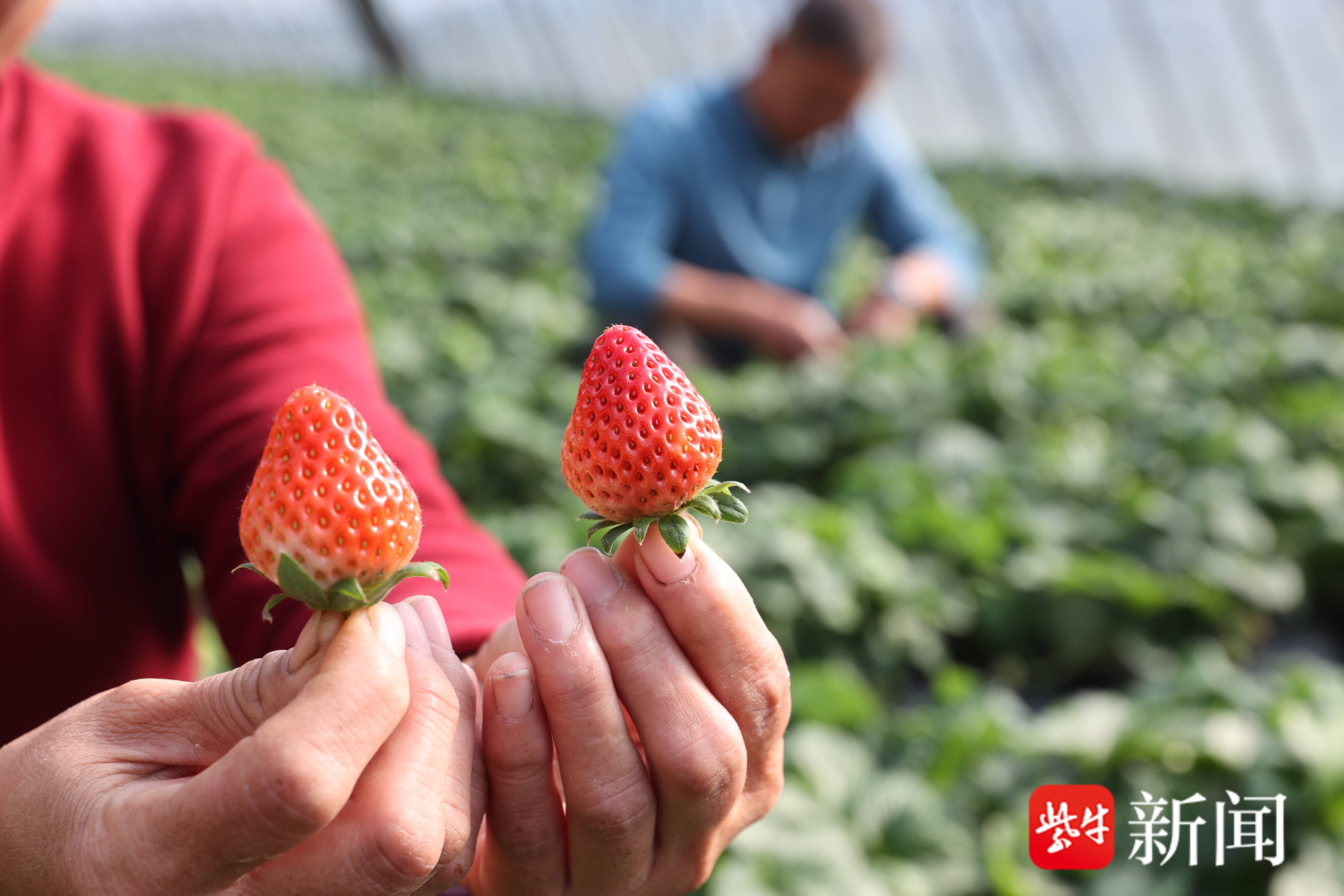 寒冬时节,连云港市赣榆区多处温室大棚内种植的草莓陆续成熟上市,香甜诱人的草莓为寒冷的冬天增添了一抹亮色。