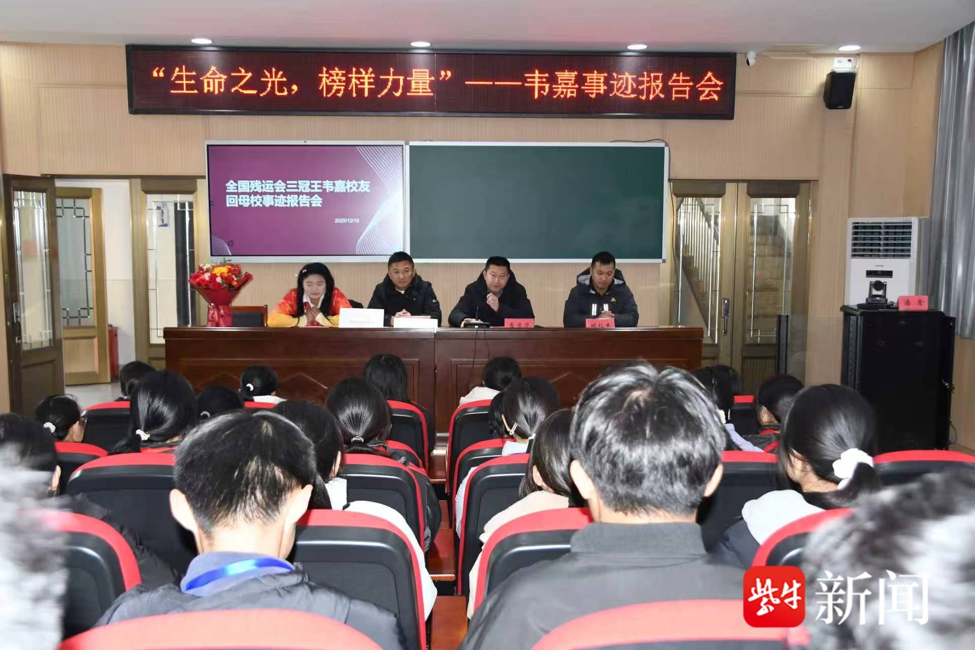榜样力量激励成长,全国残运会三冠王韦嘉校友荣归龙冈初中作事迹报告