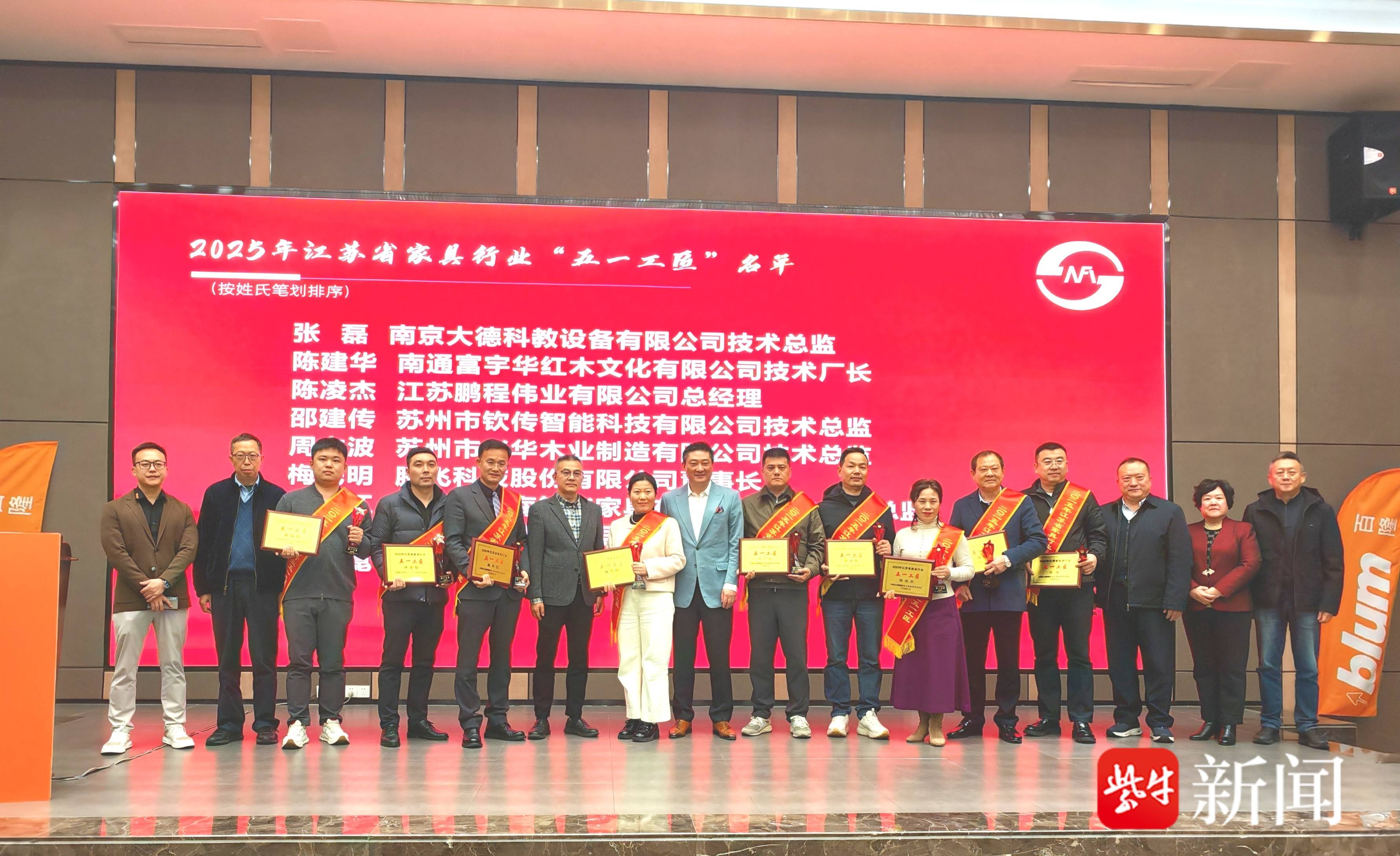 本次年会亮点纷呈,授牌表彰环节为第四届江苏省“家具行业工匠”及2025年“五一工匠”培育对象颁奖,厚重荣誉彰显工匠精神,激发行业创新热情。