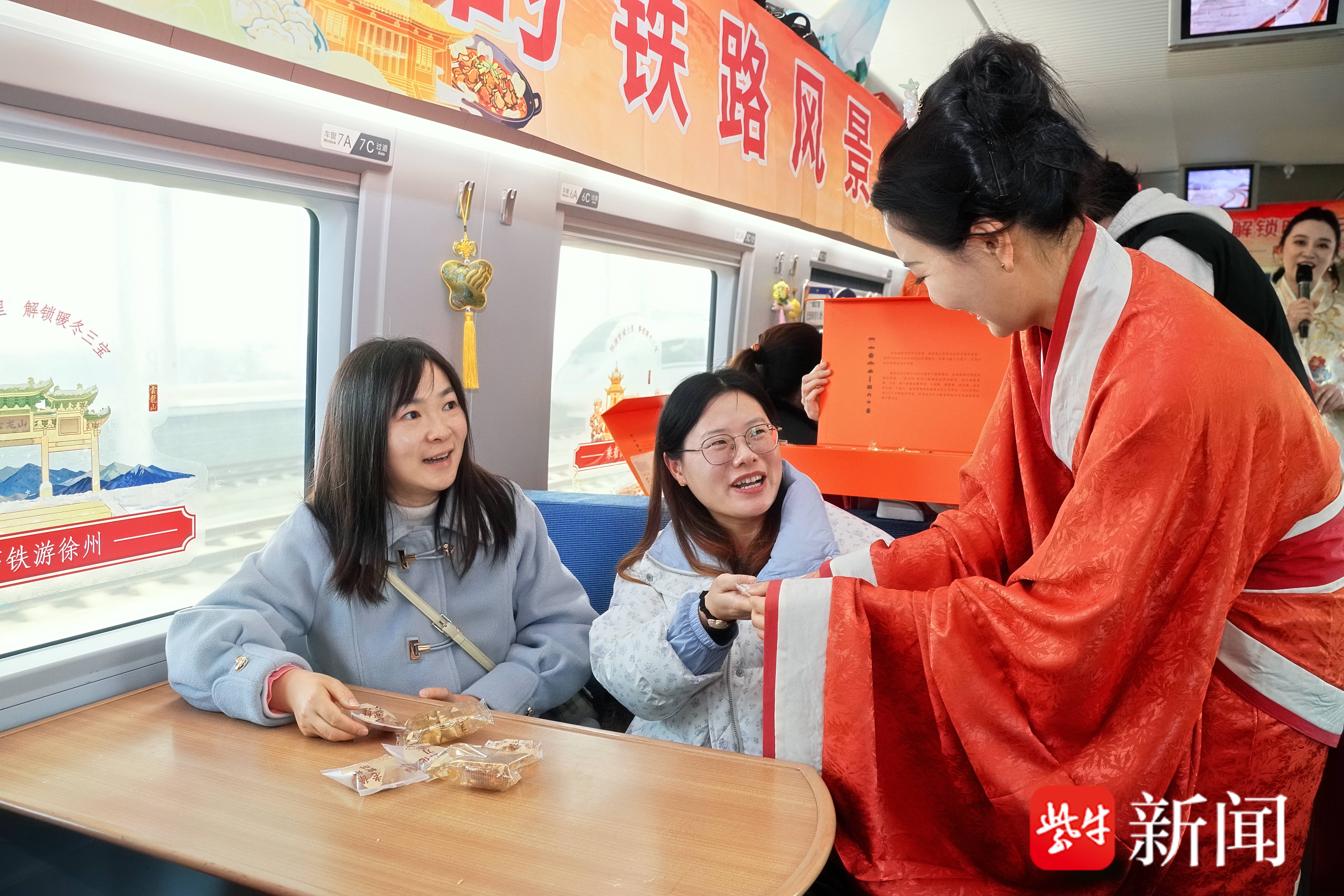 12月19日10时30分许,G1866次列车从南京南站缓缓驶出,“乘着高铁游徐州”文旅宣传推介活动拉开帷幕,为车上旅客呈上一场富有汉韵风情的徐州文化美食盛宴。