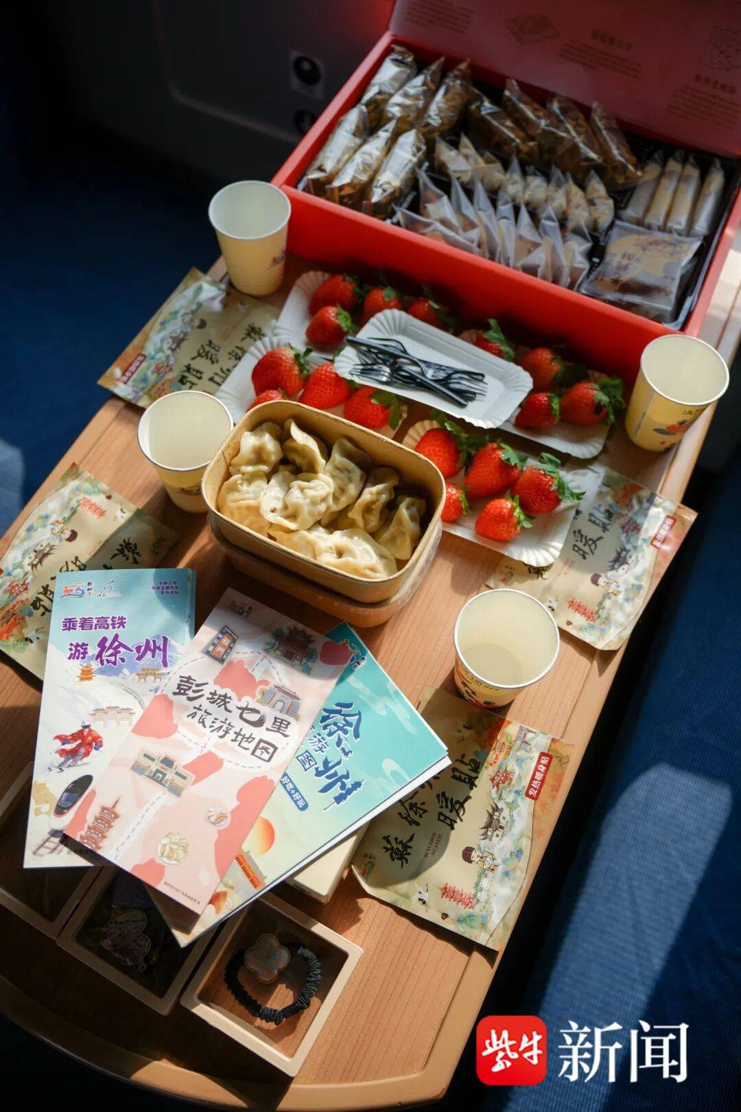 此外,徐州“老八样”糕点、新摘的贾汪草莓也受到旅客们的点赞。马庄香包非遗体验、有奖问答等活动互动踊跃。答对问题的旅客获得了徐州饮食文化博物馆“银票”、徐州暖食盒等惊喜好礼。