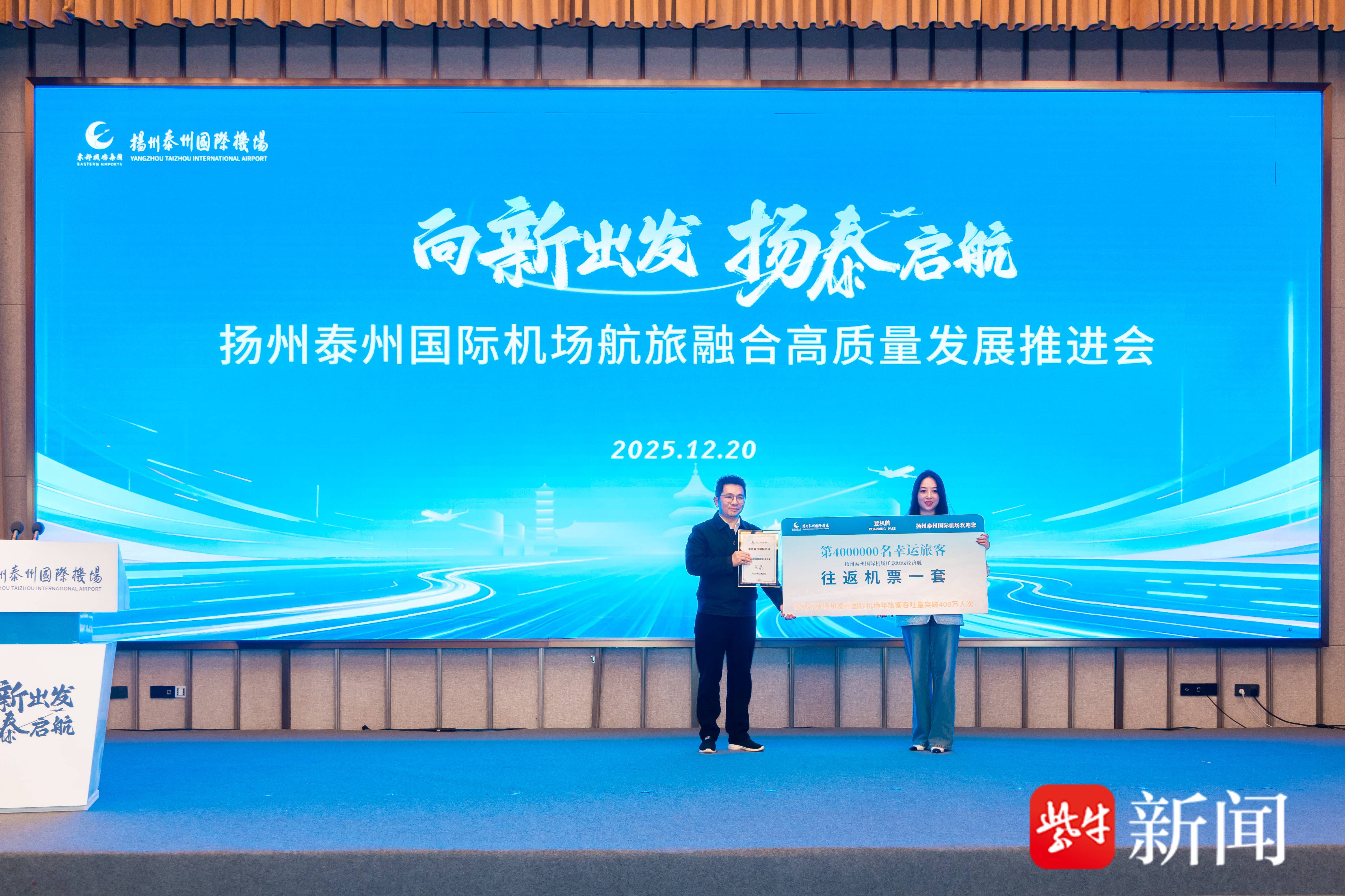 扬子晚报网12月20日讯(记者 笪越)12月20日,扬州泰州国际机场迎来年内第400万名旅客。扬州泰州国际机场航旅融合高质量发展推进会举行,进一步深化航旅融合、优化机场服务。