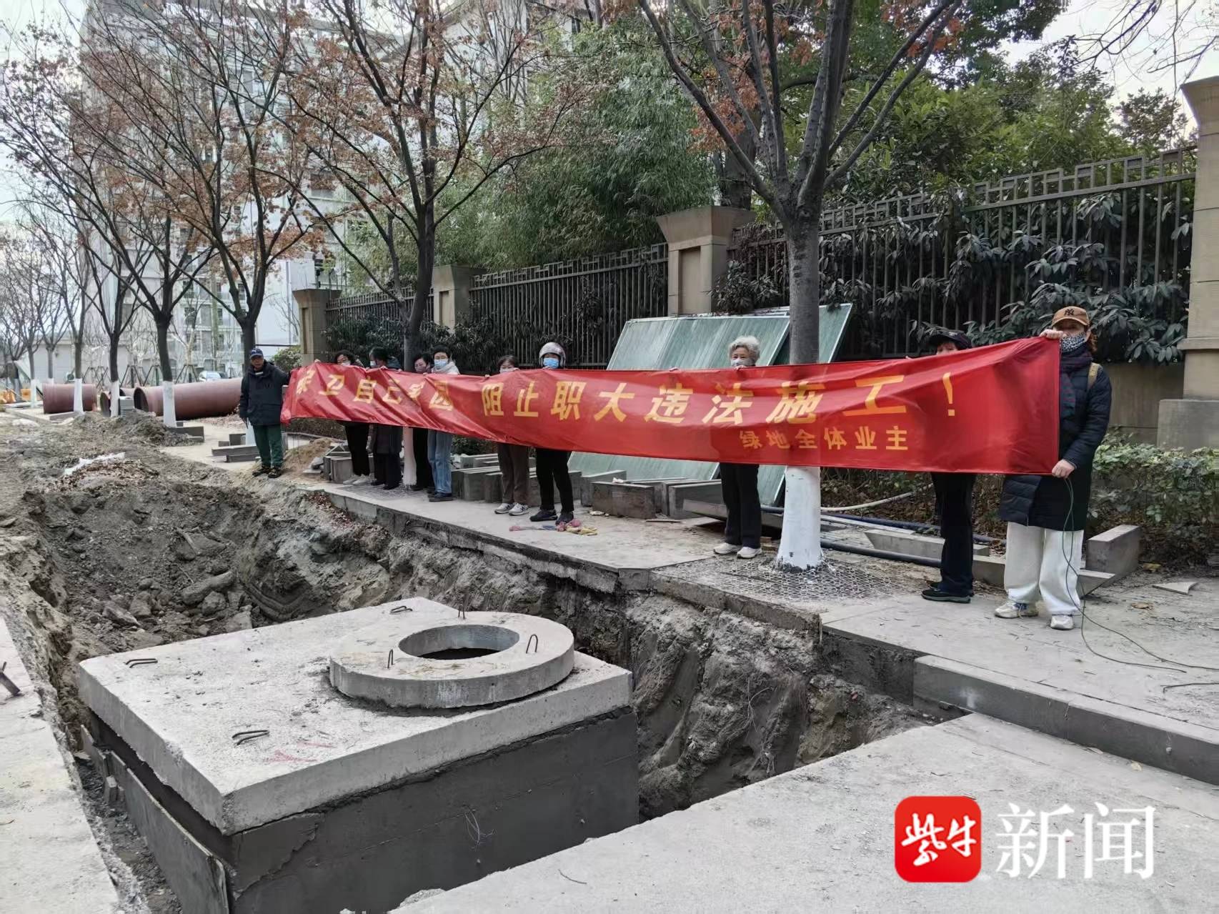 尽管建设方出示了方案说明,大部分业主仍不认可。他们认为,雨水管道属小区公共设施,未经业主同意从上方经过可能破坏出水管道,损害集体利益。绿地新都会小区物业负责人向记者透露,12月22日下午,业主代表、物业、校方后勤处及社区工作人员曾进行四方协调,施工随后暂停。