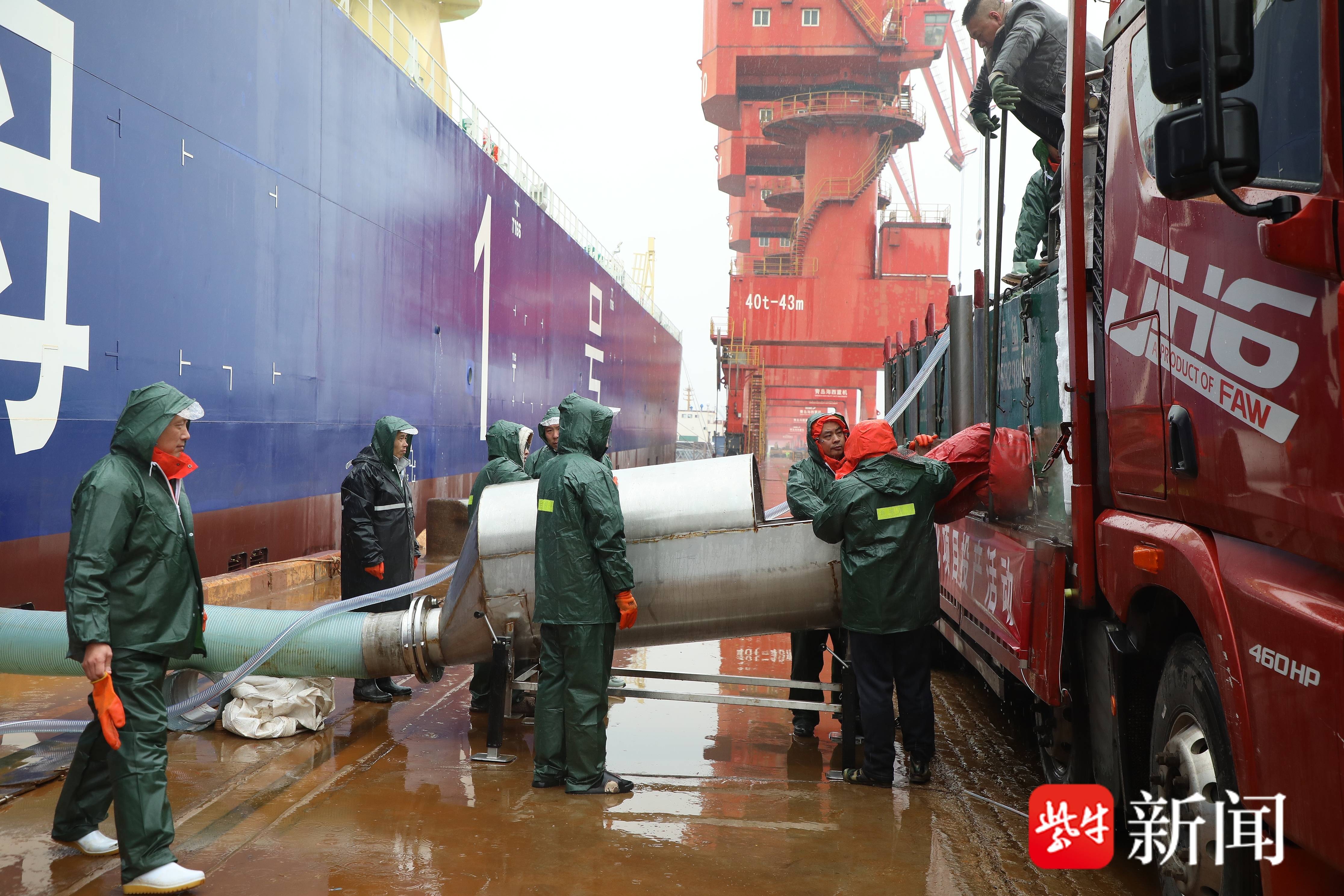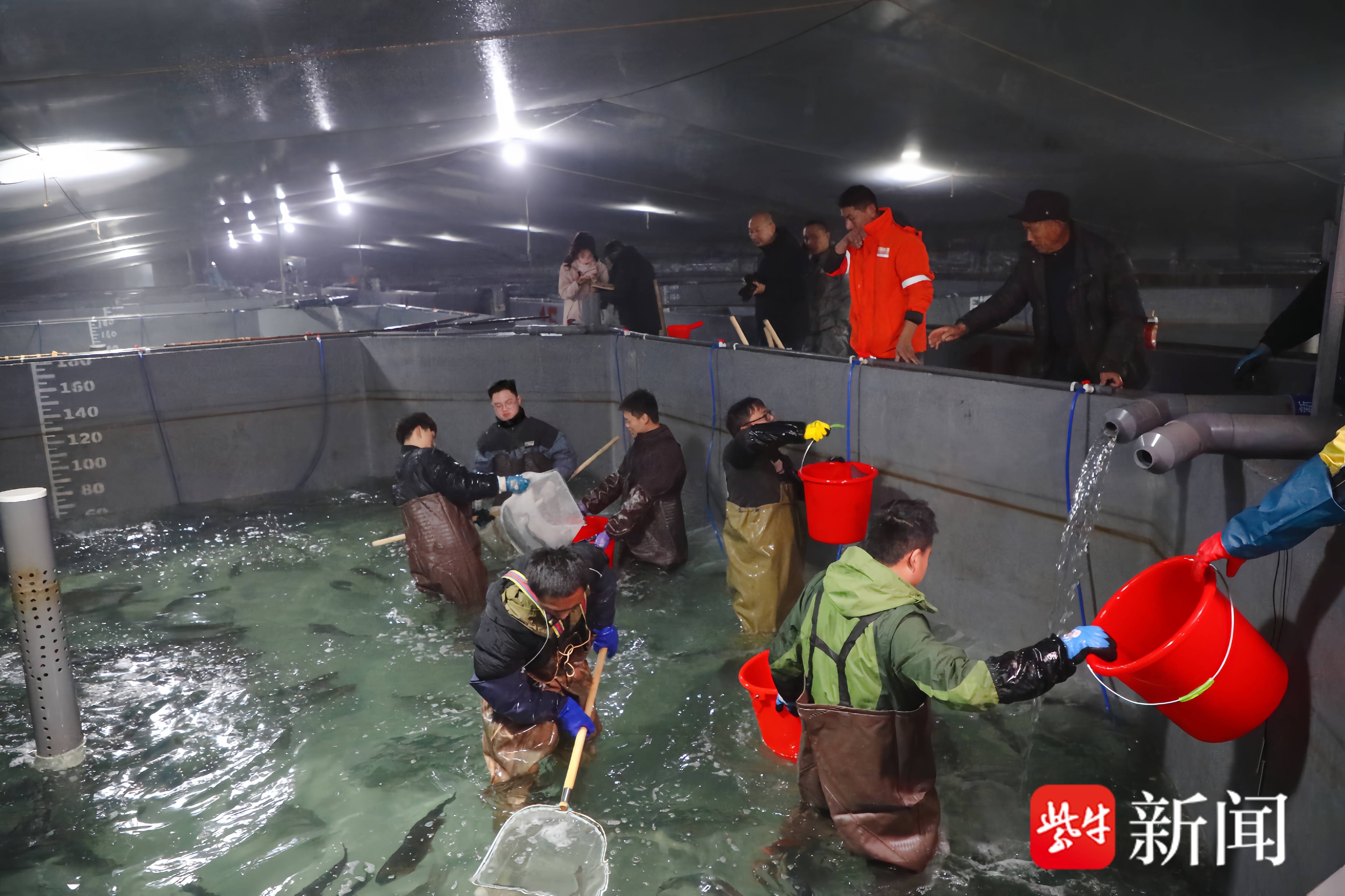 黄海之滨夜幕将至,全球首艘10万吨级“苏海1号”三文鱼养殖工船,伴随着“呜呜”鸣笛声缓缓驶入港口;与此同时,在赣榆区水产苗种繁育和现代化养殖示范中心4号育苗车间里,工人们正在有序进行捞苗、转运、装车作业。约30分钟后,一尾尾活蹦乱跳的三文鱼苗将从陆地游向深海“摇篮”——12月23日上午,连云港赣榆港区新海湾码头启动鱼苗入舱作业,经过海水驯化的优质鱼苗分批次平稳进入专用养殖舱,顺利“登船”。标志着江苏利用养殖工船实施游弋式深远海智慧养殖正式进入重要转段环节,也标志着连云港市赣榆区三文鱼养殖正式迈向产业化运营新阶段。自此,这艘“巨无霸”渔船将正式开启深远海三文鱼养殖作业。