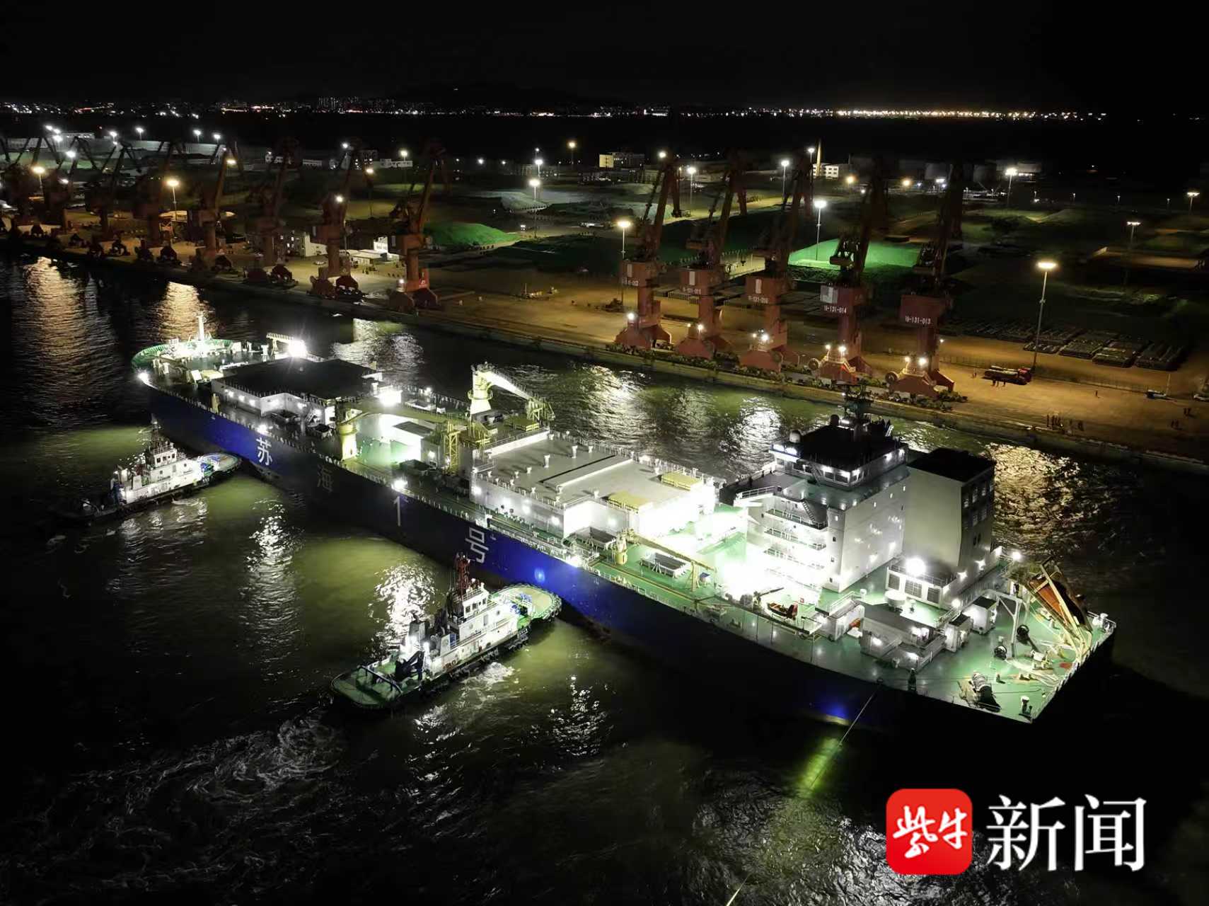 该工船全长249.8米,养殖水体达8.3万立方米,设计年养殖能力约8000吨。配备智能管控系统,可实现 “即捕即加工、即产即销”。“预计达产后单艘工船可年产三文鱼6000吨,年产值约5亿元。”连云港市赣榆区农发海洋集团董事长周兴介绍,这不仅有助于填补国内三文鱼市场缺口,更能为消费者提供更稳定、优质的国产三文鱼产品。