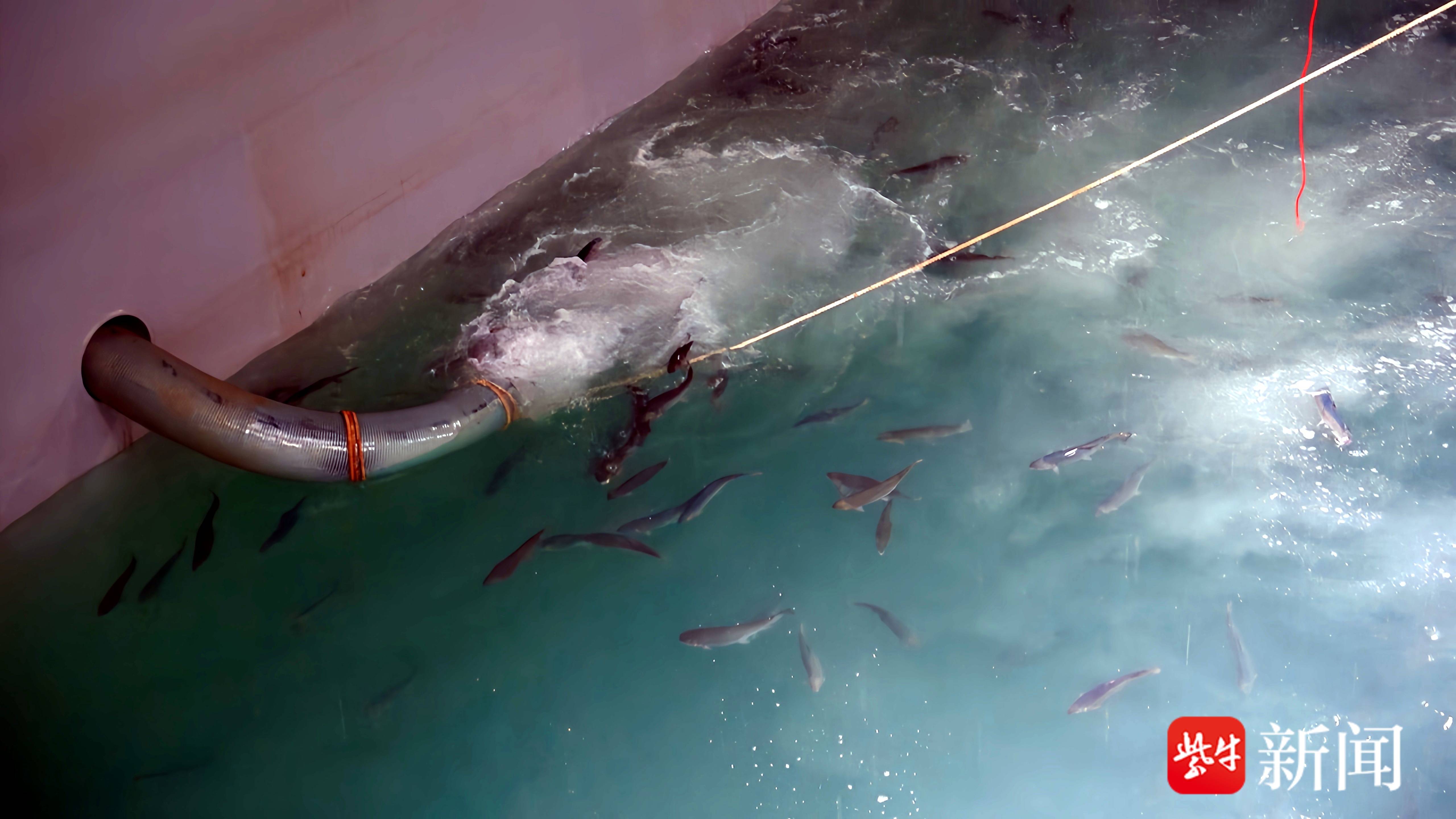 全球首艘10万吨级“苏海1号”三文鱼养殖工船首次投苗