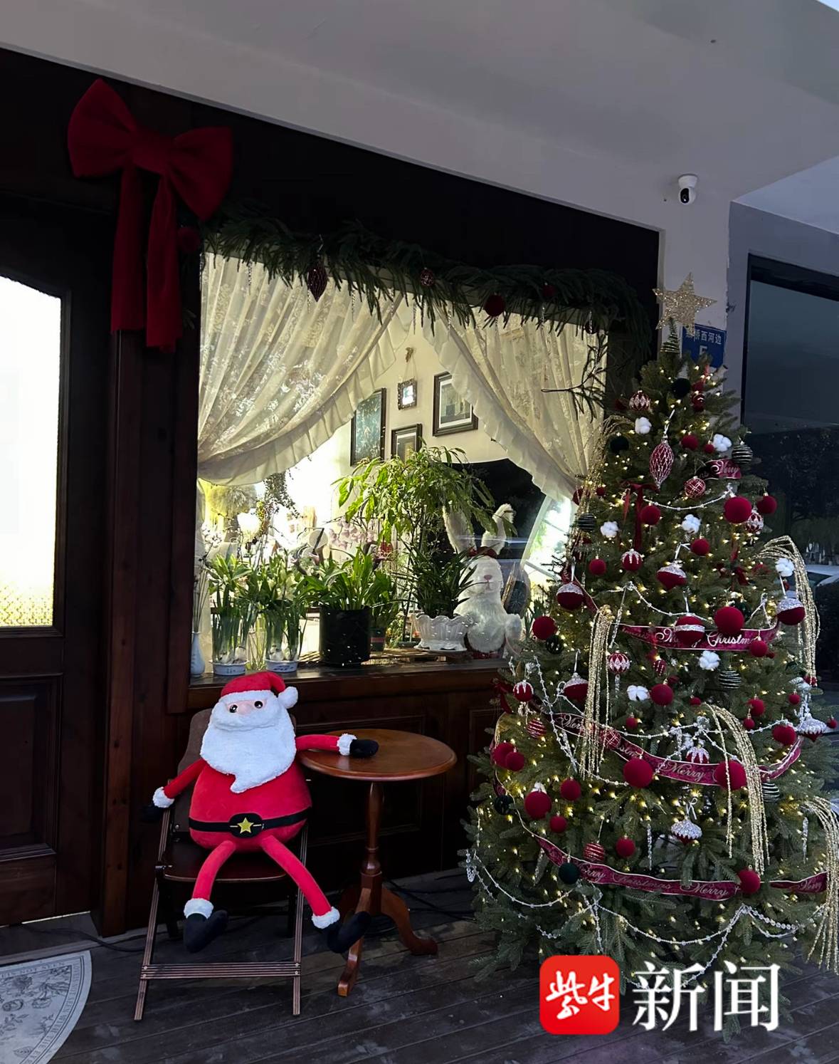 据胡先生介绍,24日凌晨2点多,彼时餐厅已打烊,门口精心布置的圣诞装饰在夜色中格外显眼。其中,那个最大号的圣诞老人玩偶是餐厅的“打卡爆款”,不少年轻人专程前来拍照留念,为餐厅聚拢了不少人气。