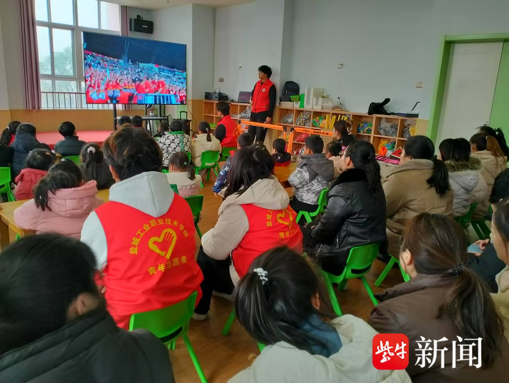 12月24日上午,盐城市新园路幼儿园二楼活动室内,欢声笑语,气氛热烈。一场盐南高新区新河街道新怡社区关工委联合盐城工业职业技术学院马克思主义学院的老师和幼儿园大班的学生、老师齐聚一堂,举办“莎姐课堂一一学苏超精神 ”活动。