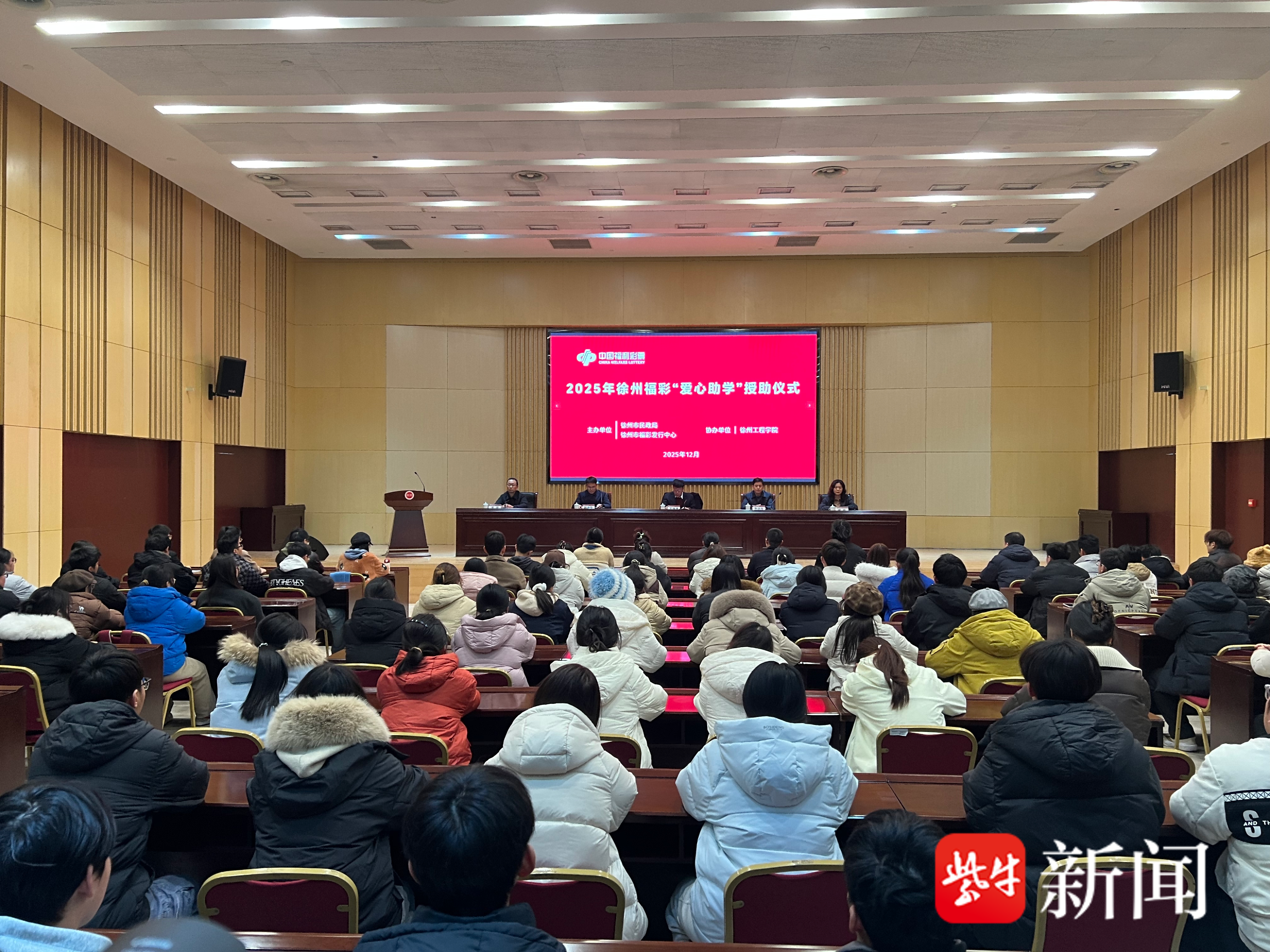 12月12日下午,2025 徐州福彩“爱心助学”受助仪式在徐州工程学院行政楼报告厅温情举行。活动现场,向来自中国矿业大学、江苏师范大学、徐州医科大学、徐州工程学院四所高校的160名家庭困难新生,每人发放5000元助学金,这份来自社会的关爱,为他们缓解了学业与生活压力,更坚定了逐梦大学的信念。