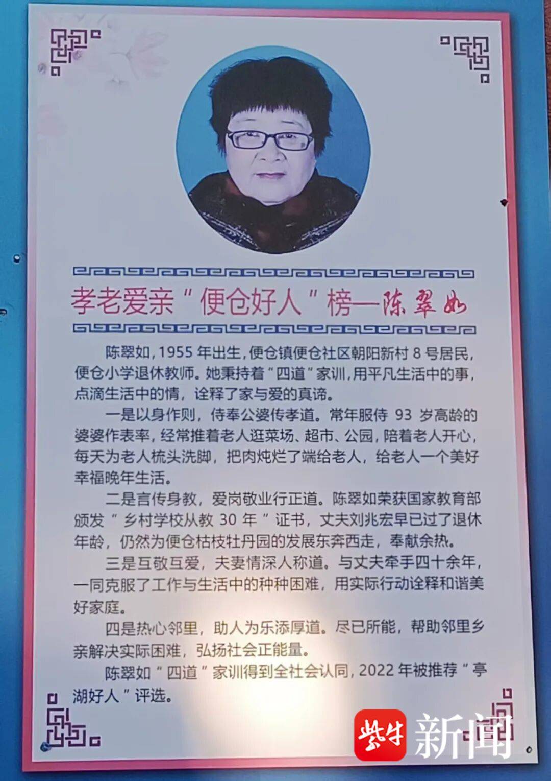 陈翠如的“四道”家训,如同一股清泉,滋润着家庭的每一个角落,也影响着身边的每一个人。她的故事在便仓镇广为流传,得到了全社会的认同与赞誉。2022 年,她被推荐参与“亭湖好人”评选,成为了人们心中当之无愧的道德楷模。