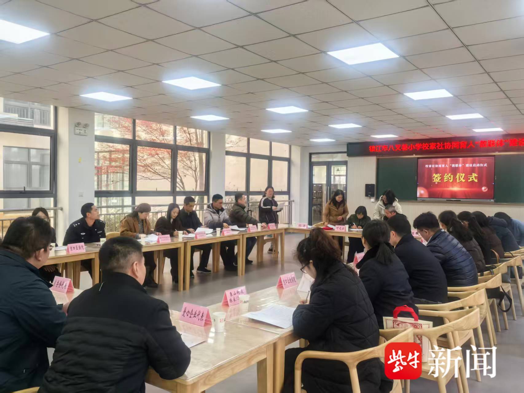 扬子晚报网12月27日讯(通讯员 张风雷 孙逊 记者 万凌云 姜天圣)12月26日下午,镇江市八叉巷小学隆重举行家校社协同育人“教联体”建设启动仪式。镇江日报社城区融媒中心、镇江市广电全媒体编辑中心、镇江市乒乓运动学校、镇江市图书馆、镇江市蔬菜研究所、镇江市妇女儿童活动中心、爱心企业代表及家委会代表等十多家单位与个人齐聚校园,共同见证这一推动教育协同发展的重要时刻。活动由校德育处商韦菊主任主持。