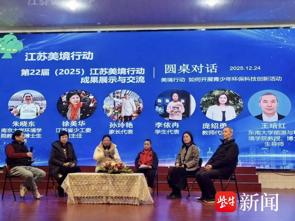 活动中,一场主题为 “美境行动,如何开展青少年环保科技创新活动” 的圆桌对话引发广泛思考。行业专家、师生代表及家长代表深入探讨环保实践路径等问题。家长代表孙玲艳的发言尤为真切,她谈到孩子参与美境行动后,不仅自身养成环保习惯,还成为家庭的“环保小监督员”,带动全家践行绿色生活,让环保教育从校园延伸至家庭。最后,南京大学环境学院教授朱晓东对本次活动作总结点评。他表示:“江苏美境行动的公益性、教育性、实践性令人印象深刻,青少年环保科技创新是推动生态保护的重要力量,希望美境行动持续为青少年搭建优质平台,引导他们将知识转化为行动,以青春之力为美丽江苏建设凝聚智慧与力量。”