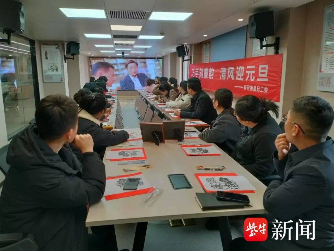盐南高新区新河街道纪工委举办“巧手刻廉韵 清风迎元旦”廉政教育活动