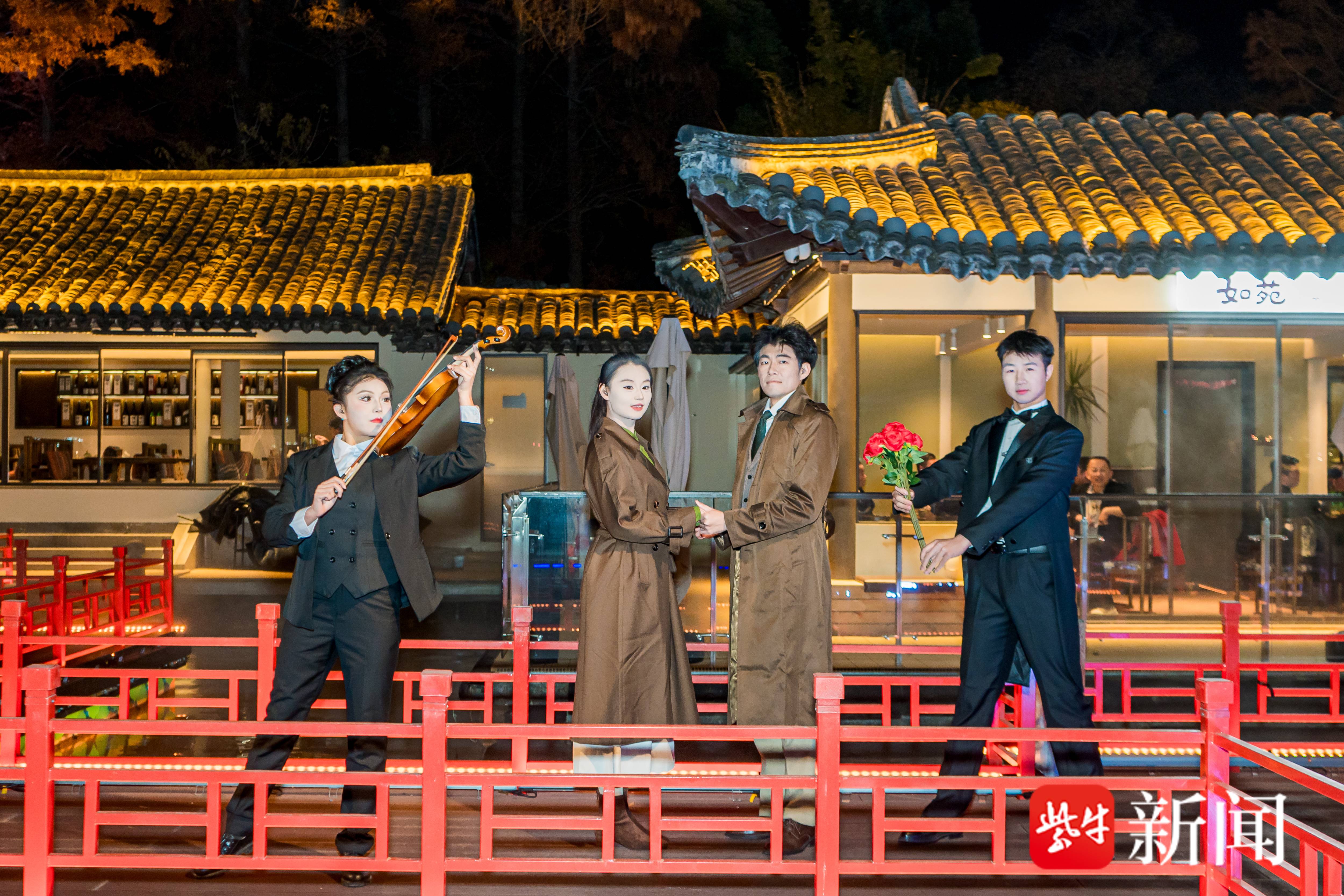 扬子晚报网讯(记者 朱亚运 通讯员 黄琳丽 陈馨)浮台半月映五亭,梅庵琴韵伴河风,光影恋曲写浪漫,水幕重现沈绣彩……12 月 29 日,“濠河夜画”沉浸式实景演艺启航仪式在南通濠河风景名胜区举行,标志着该项目正式进入运营阶段。一场以“千年濠河 百年好合”为主题,融历史人文、光影科技与实景演艺于一体的沉浸式夜游新体验,自此向广大市民和游客揭开神秘面纱。