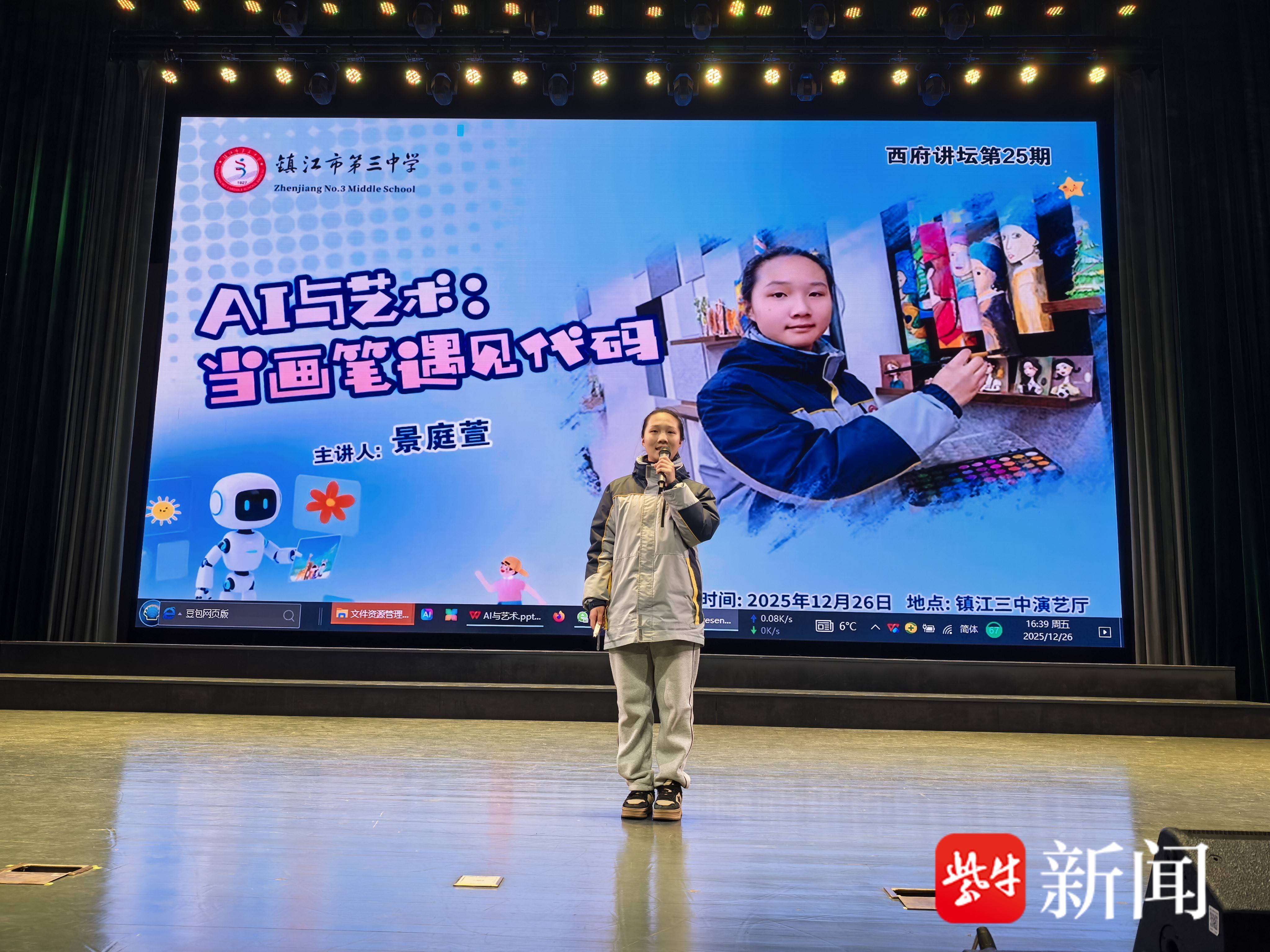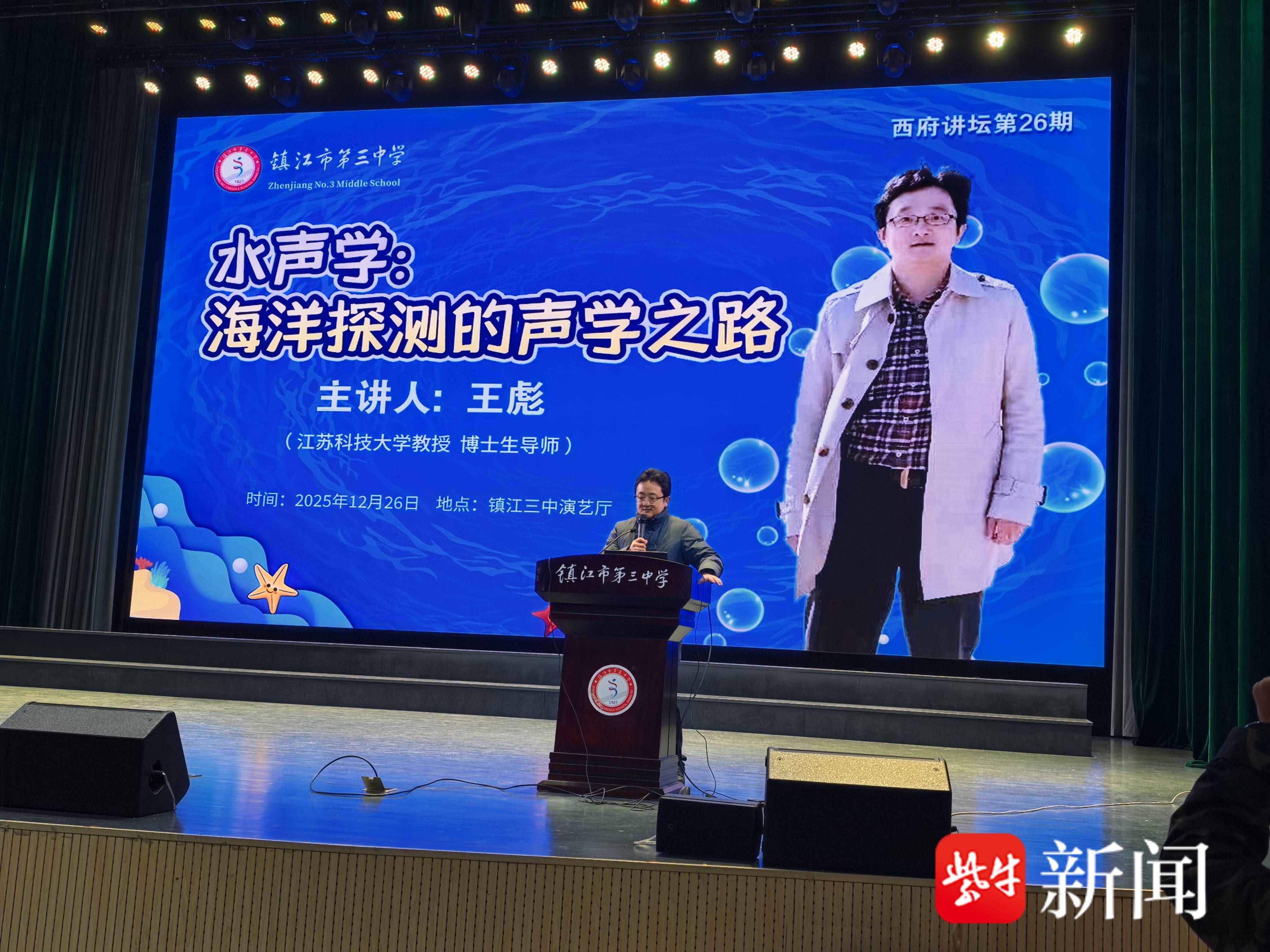 12月26日,“西府讲坛”在演艺厅精彩开讲,两场跨界分享为师生带来全新认知体验。江苏科技大学教授、学生家长王彪以《水声学:海洋探测的声学之路》为题,用通俗易懂的语言解读海洋探测的前沿知识,搭建起家校协同育人的科普桥梁;镇江第三中学八(5)班学生景庭萱则带来《AR 与艺术:当画笔遇见代码》的分享,展现了新时代学子在跨学科领域的探索与创新,彰显了教学节赋能学生全面发展的育人成效。