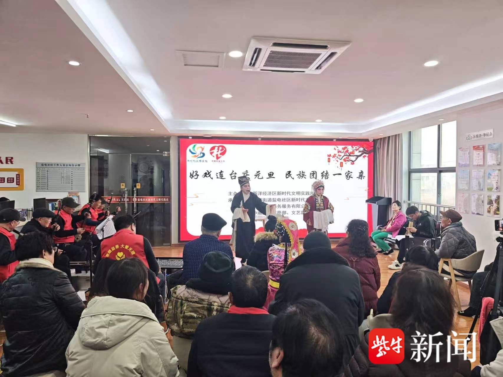 元旦佳节来临之际,盐城新洋经济区新时代文明实践所联合新洋街道盐电社区新时代文明实践站,携手中顺润达商务服务有限公司及公司旗下中顺润达志愿部、文艺部、直属11团,共同开展以“好戏连台庆元旦,民族团结一家亲”为主题的文艺活动,为社区居民献上了一场洋溢着浓浓年味与深厚民族情谊的文化汇演。
