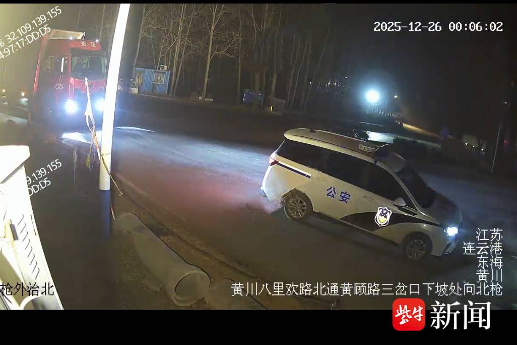 就在此时,黄川派出所正在该区域执行夜间巡逻任务的两名辅警发现了困境中的于先生。了解情况后,两位辅警没有丝毫推诿和怠慢,立即伸出援手。他们充分体谅司机焦急的心情,在确认安全的前提下,果断驾驶警车开启引导灯,在前方为于先生的货车带路。凭借对辖区路况的熟悉和专业的处置能力,他们选择了一条安全可行的路线,引导货车平稳、顺利地驶离了复杂路段,成功摆脱困境。