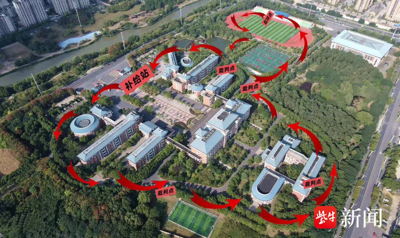 15点30分,伴随着庄严的国歌,比赛正式拉开帷幕。校党委书记吴铁俊、中泠学院顾准山副校长、镇江市教育局体卫艺处副处长郑子怡、镇江市体育教研员吴亚香同时发枪,选手们如离弦之箭般冲出起点。赛道上,精英竞速组的选手们你追我赶,尽显强劲运动实力;大众参与组的选手们相互鼓励,尽情享受运动快乐。沿途的补给站、医疗点,还有志愿者们此起彼伏的加油声,共同构成了赛场上最温暖的风景线。