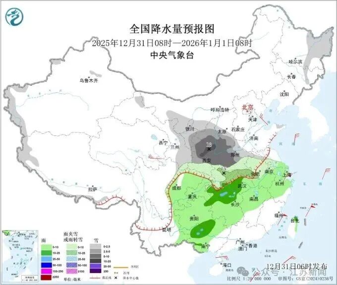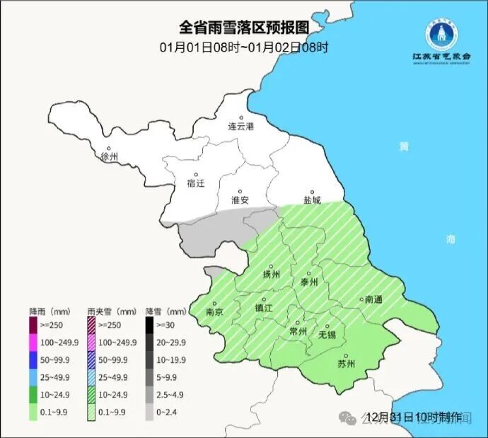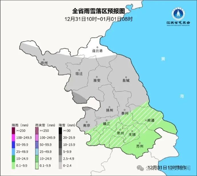 刚刚,江苏气象发布最新全省雨雪落区预报图: