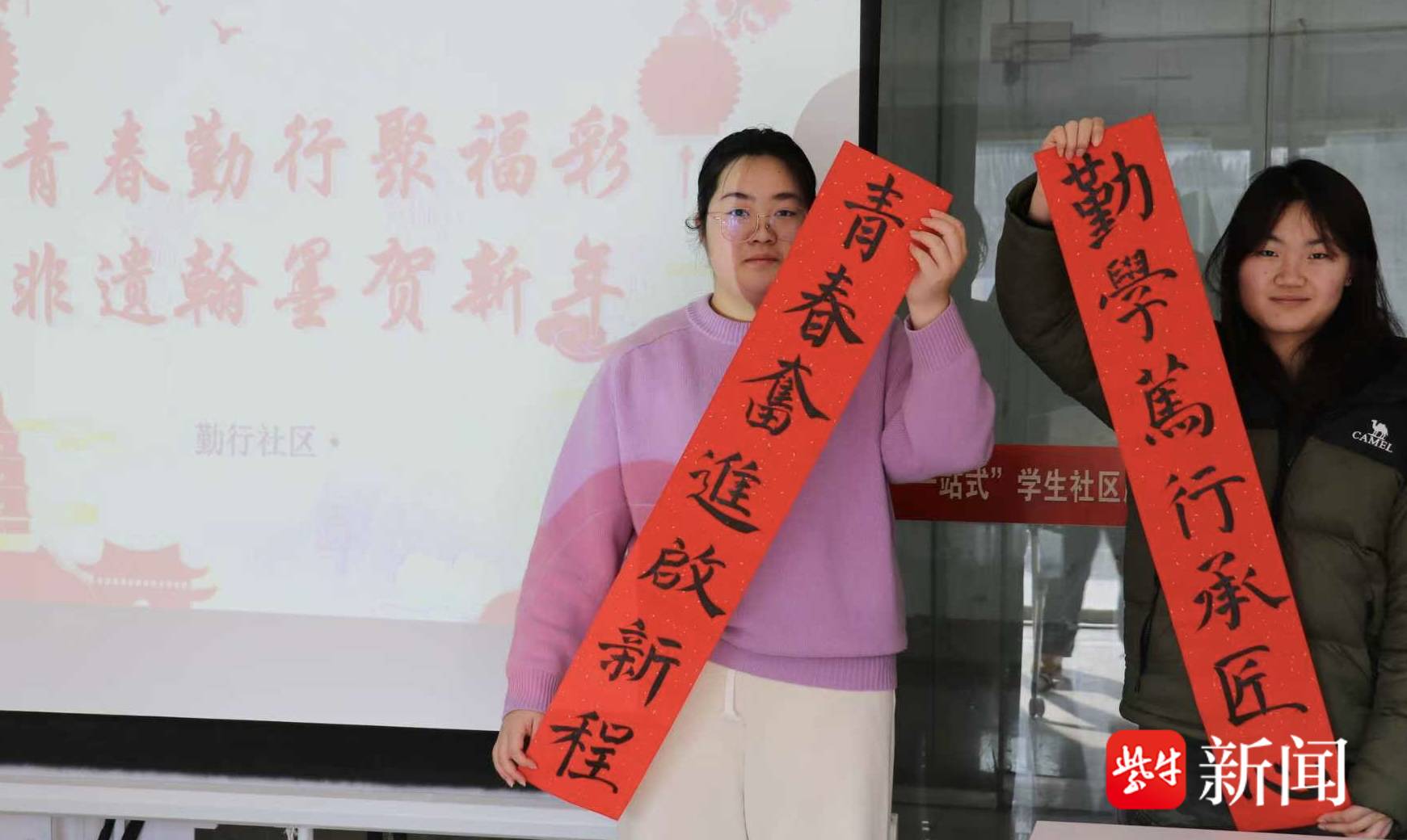 扬子晚报网12月31日讯(通讯员 罗钢 记者 陈咏)又是一年元旦到,扬州职业技术大学经贸学院“勤行”社区内一片欢声笑语,一场以“青春勤行聚福彩 非遗翰墨贺新年”为主题的创意活动在这里火热开展。学生们围坐在一起,编织新春花束、编制中国结、挥毫泼墨写福字、体验传统拓印技艺,在动手实践中感受节日温暖,迎接新年到来。