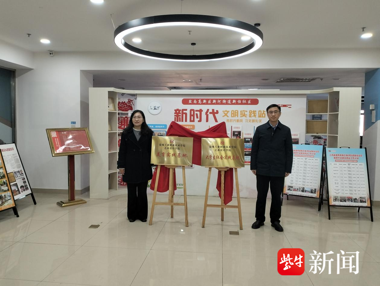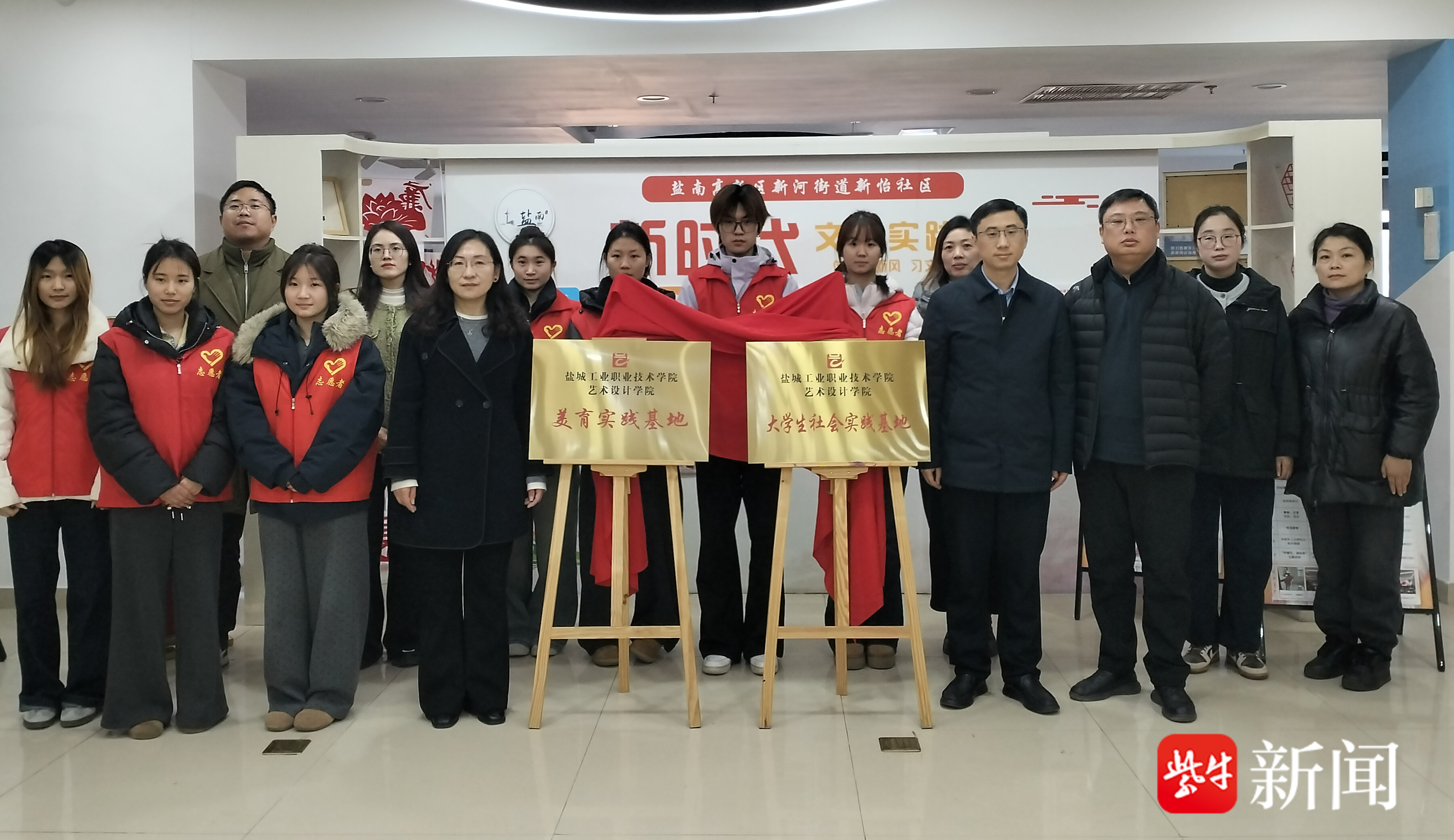 12月30日下午,盐南高新区新河街道新怡社区举行校社共建揭牌仪式。该社区党总支书记裴增浩与盐城工业职业技术学院艺术设计学院党总支书记秦晓共同举行“盐城工业职业技术学院美育实践基地”“大学生社会实践基地”揭牌仪式,标志着学校社区共建合作进入了新的阶段。艺术设计学院第二党支部书记杨敏、艺术设计学院团总支书记蔡华明出席仪式,学生代表、社区工作人员参加。
