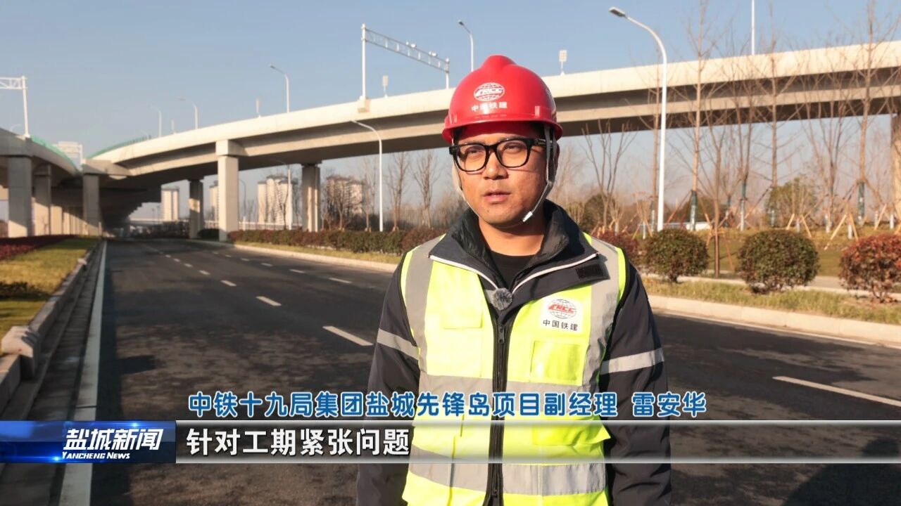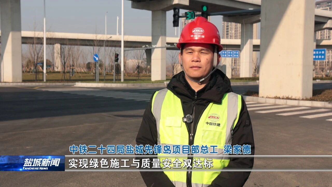中铁二十四局盐城先锋岛项目部总工 梁家德介绍我们科学制定计划,分区段封路作业,高峰期投入60余台设备、200余名人员,严格落实安全技术交底,实现绿色施工与质量安全双达标。