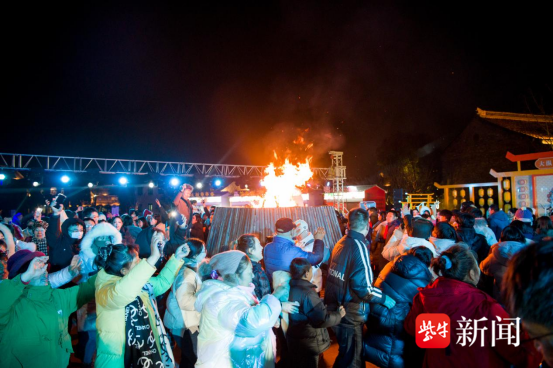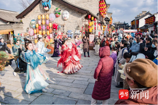 9点18分,在景区东晋水城城门楼广场,《新春新动线 “马”上新体验》鼓乐、舞蹈和开城门表演营造出热烈的氛围,大纵湖专属 IP 人偶首次亮相!以湖鲜鱼蟹、特色白壳螺蛳和灵动小鸊鷉为原型的萌趣形象,一出场便成为焦点。未来,它们将化身表情包、漫画主角、文创好物,陪伴每一位游客解锁趣味旅程,让大纵湖的故事,在行走间娓娓道来。中午前后,建安大街上,《仙侠奇缘》《玄箭仙族》《青瓷绽芳华》《坛韵》《半城风月》《歌曲驿站》《宋潮乐》《天骄无双》以及《遇见岳飞 —— 满江红》等精彩节目轮番上演,让游客目不暇接、沉醉其中。舞者们身着古韵华服,衣袂翩跹间,将仙侠的飘逸、青瓷的雅致、宋潮的风雅与岳飞的浩然正气演绎得淋漓尽致。快闪舞蹈的灵动节奏,搭配着或悠扬或激昂的旋律,引得游人纷纷驻足围观,掌声、喝彩声此起彼伏。夜幕降临,东晋水城的夜色被万千灯火点亮,红灯笼沿水而挂,与湖面的倒影交相辉映。在建安大街、宋街、水乡广场和大纵湖国家湿地公园,《花船巡游》《鱼灯夜游会》《九九艳阳天》水秀以及《放飞天灯·明灯许愿》《篝火晚会》等一系列特色节目与互动活动轮番登场,将跨年狂欢的氛围推向新高。最让人动容的莫过于《放飞天灯·明灯许愿》环节,夜幕下,游客写下祝福、点亮心愿,千灯齐飞,与漫天灯火、零星雪花相融,渐渐飘向远方。随后的《篝火晚会》更是点燃了所有人的热情,大家围着熊熊燃烧的篝火,手拉手跳起欢快的舞蹈,歌声、笑声、欢呼声交织,在水城上空久久回荡……