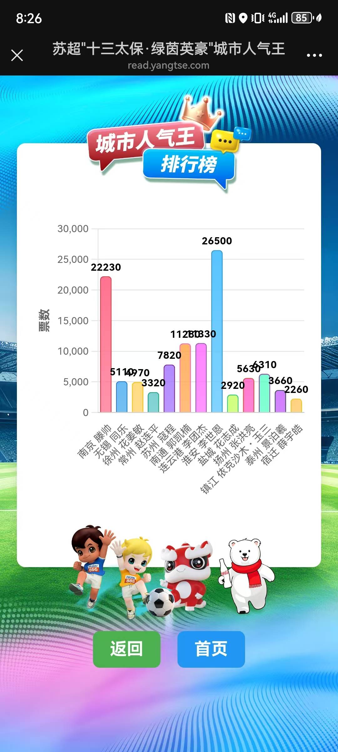 随着投票通道的正式关闭,2025苏超“十三太保·绿茵英豪”城市人气王评选活动圆满收官。感谢每一位参与投票、奔赴现场的市民,你们用行动诠释出:荣耀属于球队,更属于每一座为热爱举手的城!