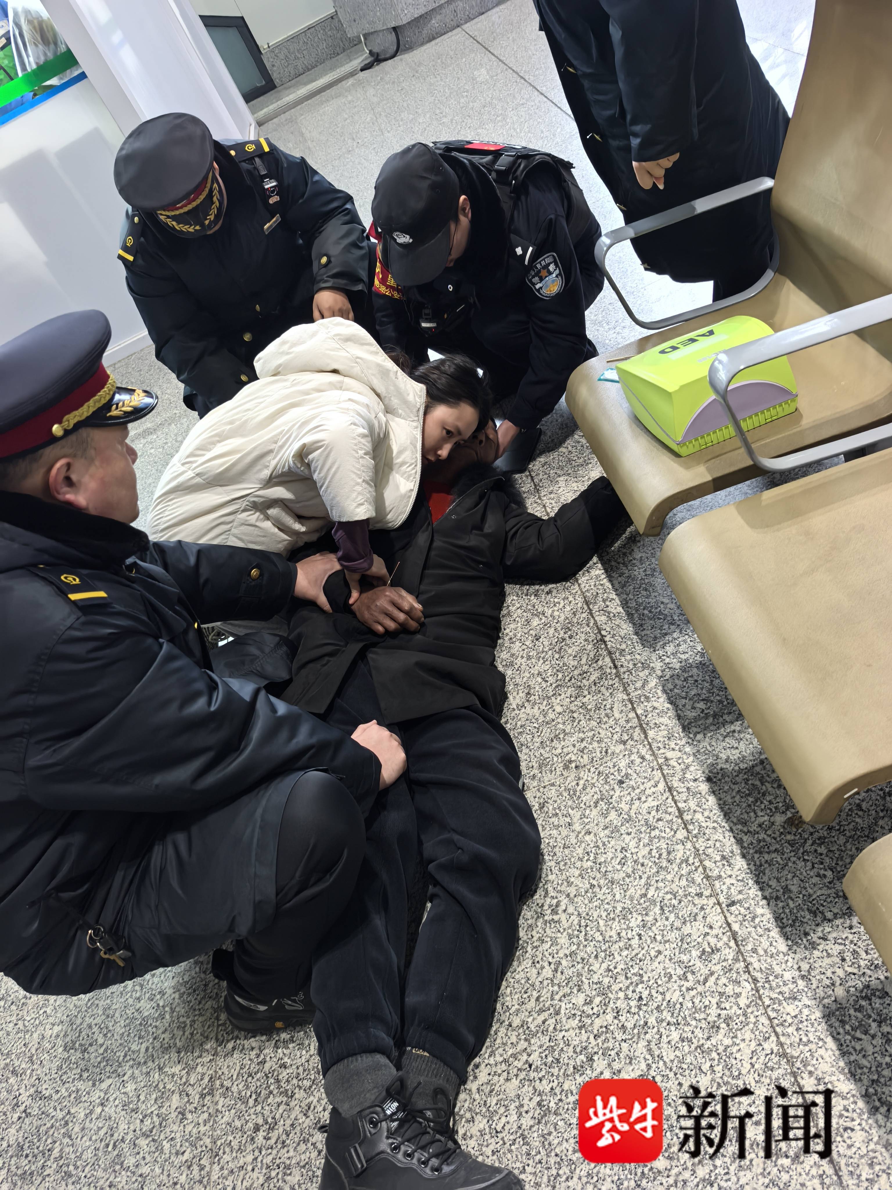 1月5日上午9时13分,张家港高铁站候车室内发生紧急一幕:一名男性旅客在座椅上突发抽搐,双手举起,口吐异物,情况危急。车站工作人员王静在巡视时第一时间发现,立即上前将该旅客扶倒放平,迅速拨打120急救电话,并通知公安民警和值班领导,同时在服务台广播寻医求助。