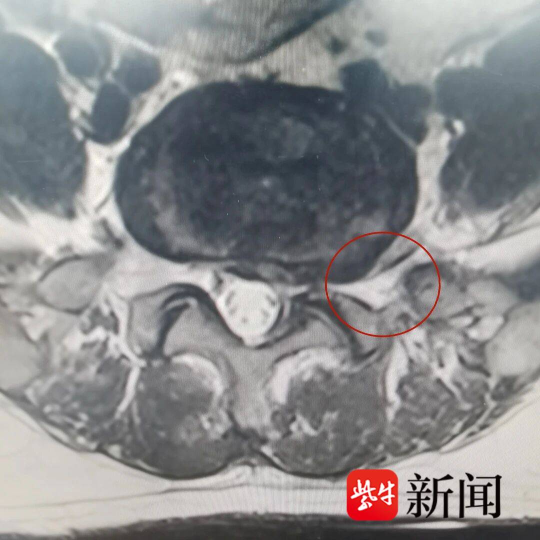 扬州的李师傅今年虽已63岁,但历来身子骨还算硬朗,没有闲着依旧打打零工。前段时间他突然腰疼得厉害,完全直不起来,伴有左脚麻木等症状,走路都困难,无奈前往医院就诊。经过查体和CT检查,江都人民医院脊柱外科副主任医师翁海忠发现患者的病情很少见。“通常而言,腰椎间盘突出发生在椎管内,你看这个患者腰5-骶1椎间盘向左后突出,发生在椎管外,硬生生的把腰5神经根挤压到变形。”翁海忠指着电脑上患者的CT影像介绍道,“这种情况,我们临床上又称作极外侧腰椎间盘突出,治疗起来较为棘手。”