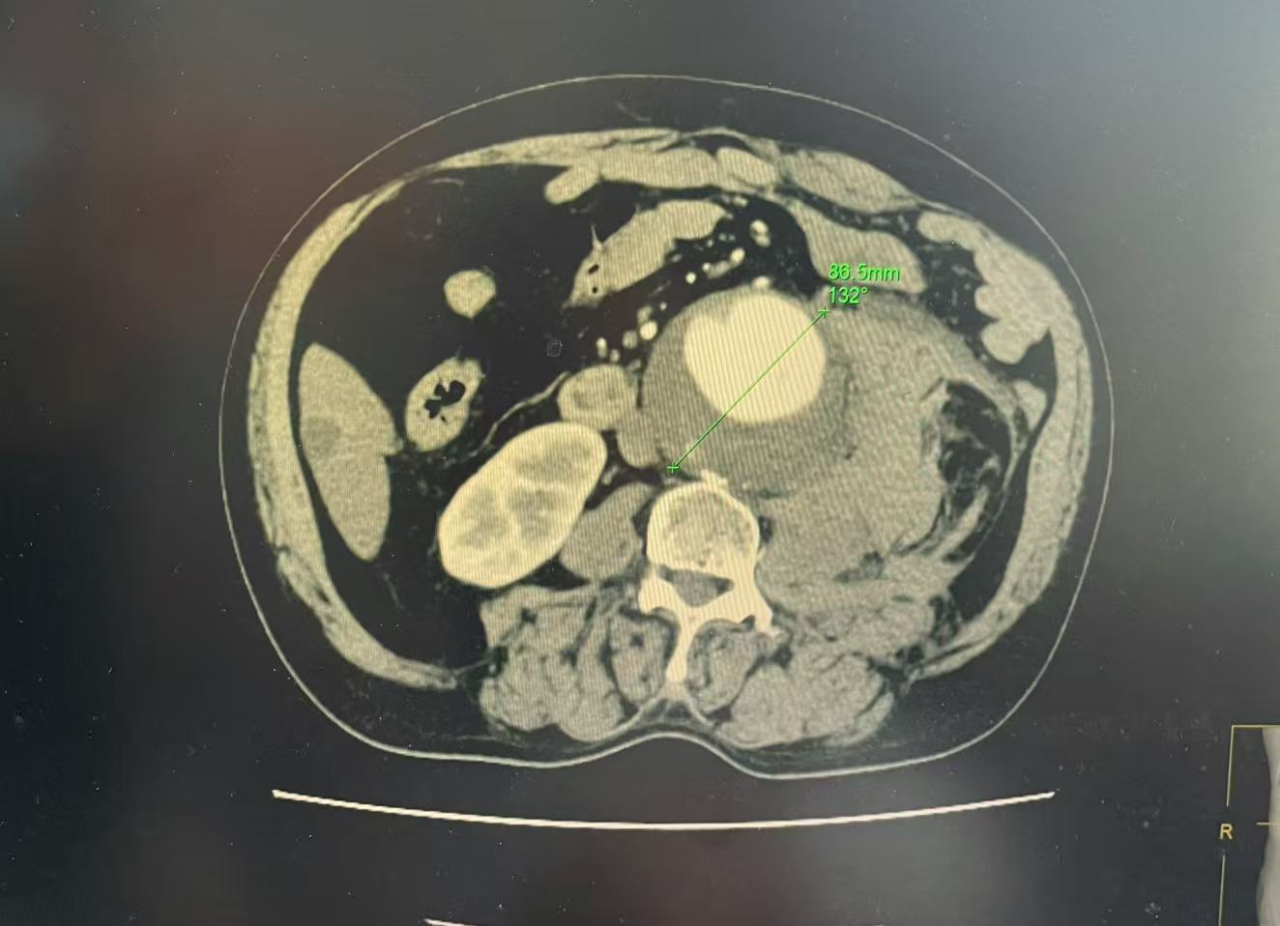66岁的王师傅5年前在外院体检查出腹主动脉瘤,约4cm大小,医生一再叮嘱虽然暂时无需手术,但要定期复查,戒烟限酒。几年过去了,王师傅早把医生的话抛之脑后,依旧烟酒不离手,高血压也控制不佳。2025年12月10日,他在和朋友一起吃午饭时,突然感到腹部剧烈疼痛,在朋友护送下前往江都人民医院急诊。