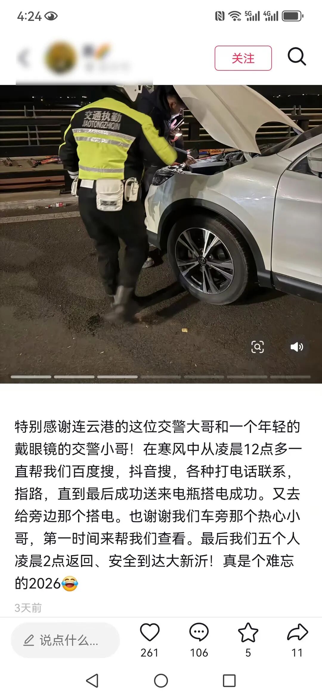 “隔空”向连云港交警表达感谢