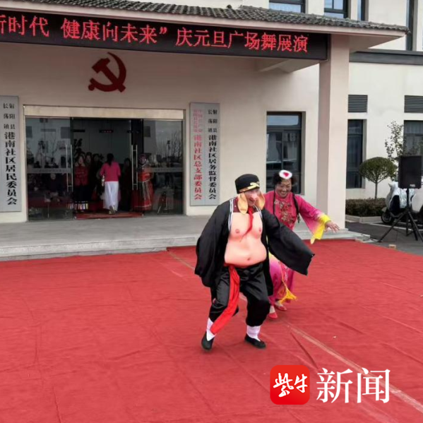 接着,15支广场舞队伍依次登台献艺,为现场观众呈现了一场精彩纷呈、美轮美奂的视觉盛宴。长荡广场舞协会带来的《唱支山歌给党听》极具感染力,舞者们身着喜庆的红色服装,眼神真挚热切,将经典红色歌曲的深厚内涵演绎得淋漓尽致,每一个动作都仿佛在诉说着党的光辉历程,让现场观众沉浸在浓厚的爱国氛围中。盐城老年活动艺术中心带来的民俗趣味舞蹈《猪八戒背媳妇》,让欢乐因子在广场上肆意流淌。他们精准复刻猪八戒的憨态可掬与媳妇的娇俏灵动,夸张滑稽的动作、生动传神的演绎,引得观众捧腹大笑、掌声雷动。