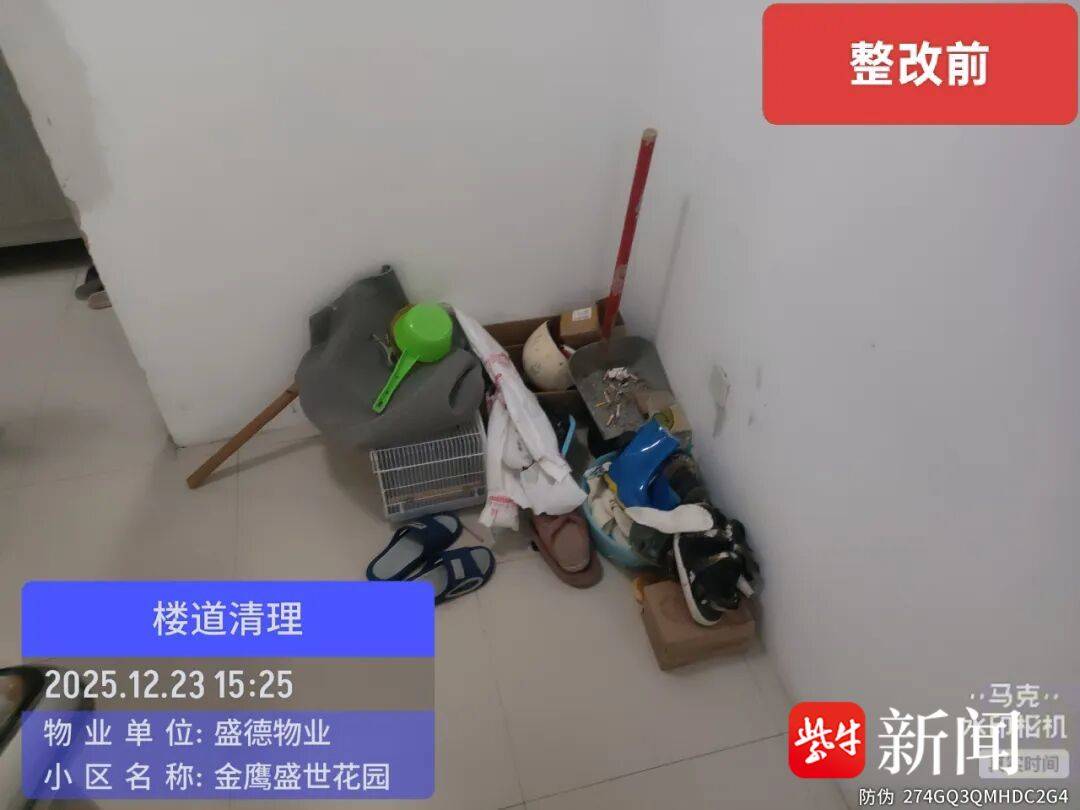 集中攻坚整治,全面扫清隐患。针对排查发现的突出问题,东台镇构建“镇物管办+”联动机制,协同城管、社区、物业,统筹力量开展集中攻坚。一方面,针对楼道、管道井等杂物乱堆乱放顽疾,书面通知住户限期整改,逾期未整改的由各物业服务企业统一清理,目前累计出动924人次、清运车276车次,清理各类杂物300多吨;另一方面,约束整治电动自行车“进楼入户”“飞线充电”等违规行为,通过现场劝导、集中清理、规范停放区域等方式,及时消除安全隐患。同时,同步推进设施维修提升,累计修复楼道照明灯82处,补充更新消防器材17处,确保楼道保持干净整洁、安全畅通。