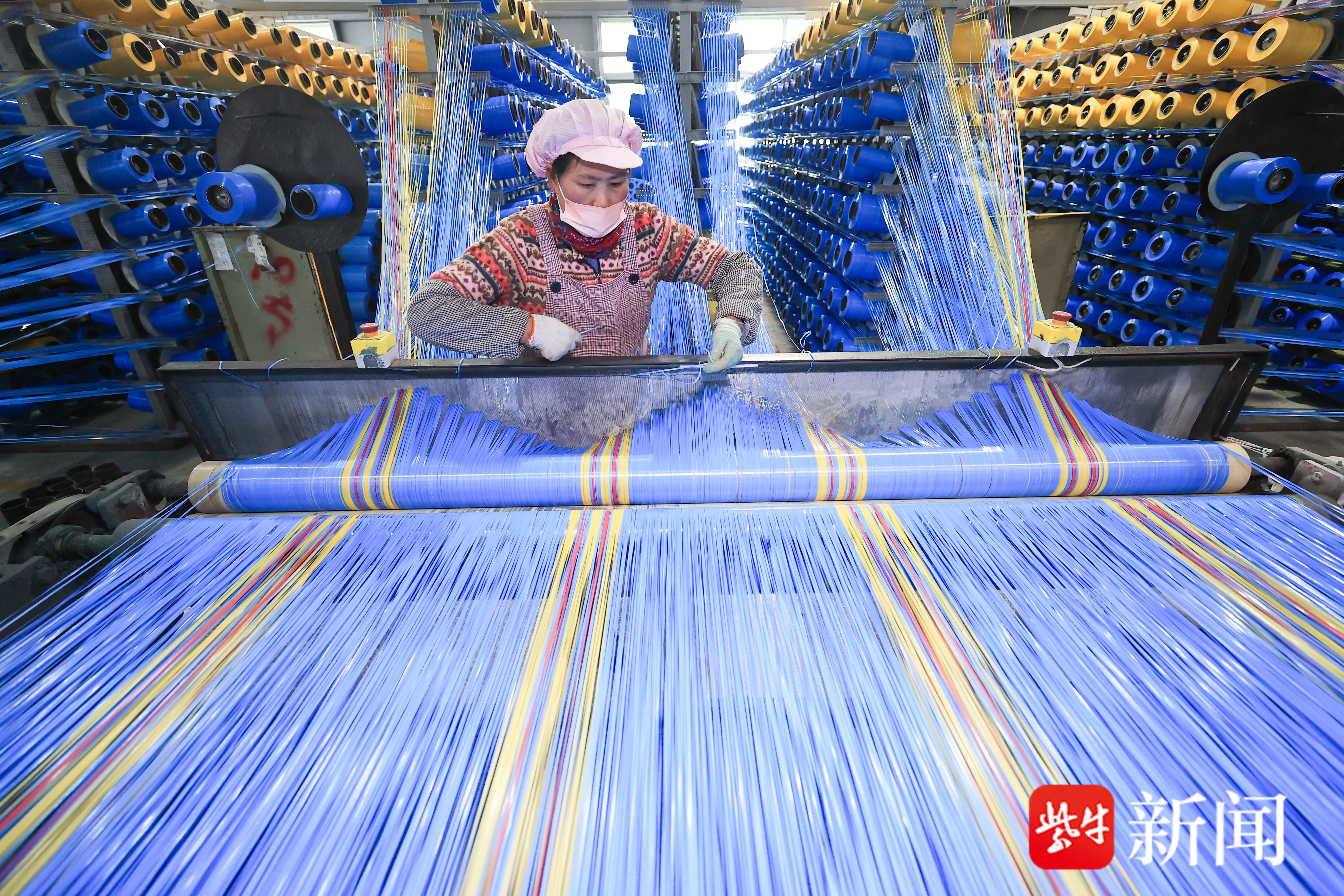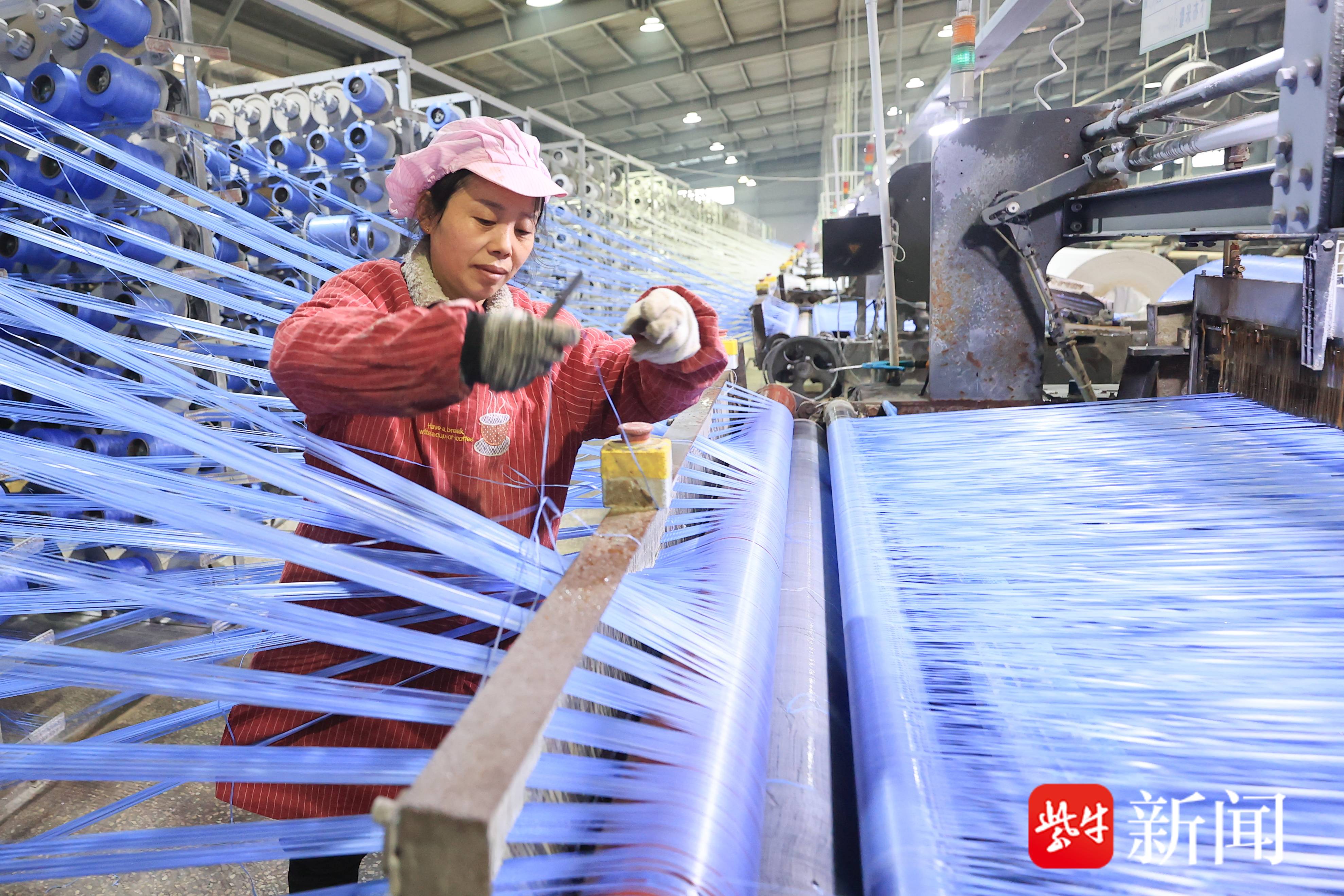 1月9日,在江苏省连云港市赣榆区沙河镇一家塑料编织企业,工人在生产车间赶制订单产品。