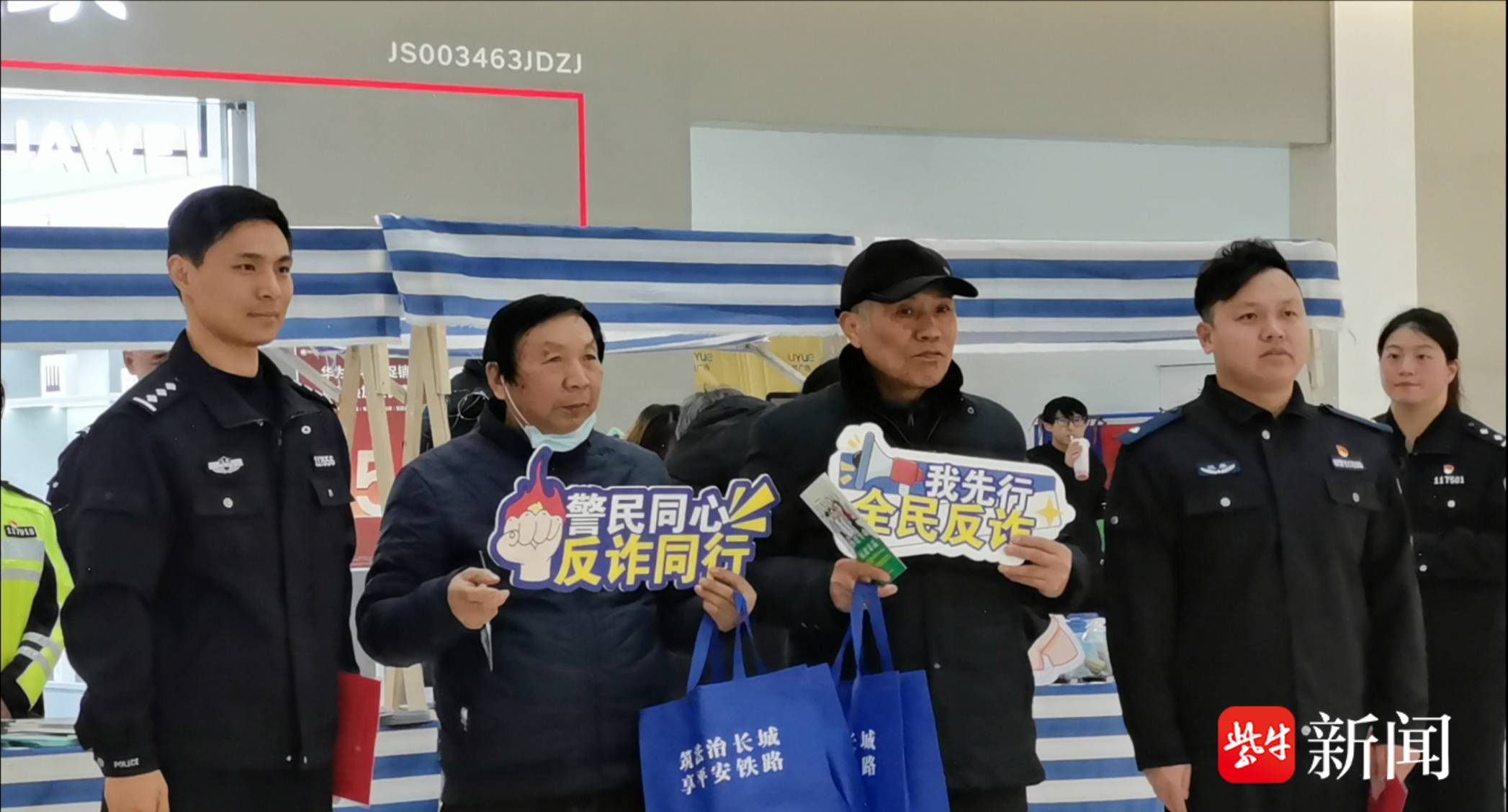 市民们被民警们的精彩讲解所吸引,纷纷驻足聆听,并不时提出自己的疑问。民警们耐心细致地解答每一个问题,现场互动氛围十分热烈。为了让安全知识更加深入人心,民警们还精心准备了宣传品,包括印有反诈标语的环保袋、铁路安全手册、生活用品等,免费发放给市民,受到市民们的广泛欢迎。
