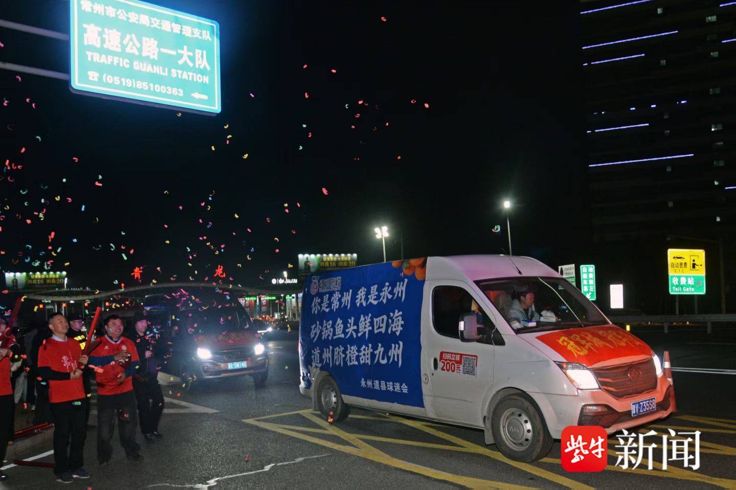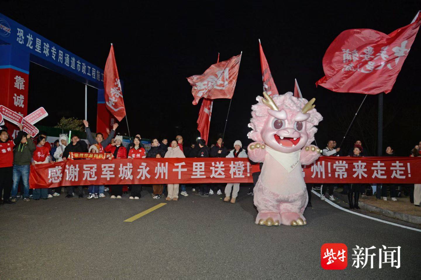 这绝对是中国足球史上最“离谱”却又最“温暖”的一次跨省奔赴,永州宋家洲大桥上“常州恐龙妹妹”的祝福牌映着潇湘水光沪蓉高速常州段旁“永州网友”的答谢语随车流传入龙城两块广告牌隔空呼应拉开了一场名为“双向奔赴”的温情奔赴。1月9日晚8点33分,来自永州道县的380箱脐橙到达常州。“欢迎永州!”“谢谢‘十五弟’!”“常州永州是兄弟!”“永州常州,一起夺冠!”在宁沪高速公路常州管理处等了一个多小时的常州球迷们沸腾了,旗帜、彩带、鼓声、呐喊声如浪潮般涌来。