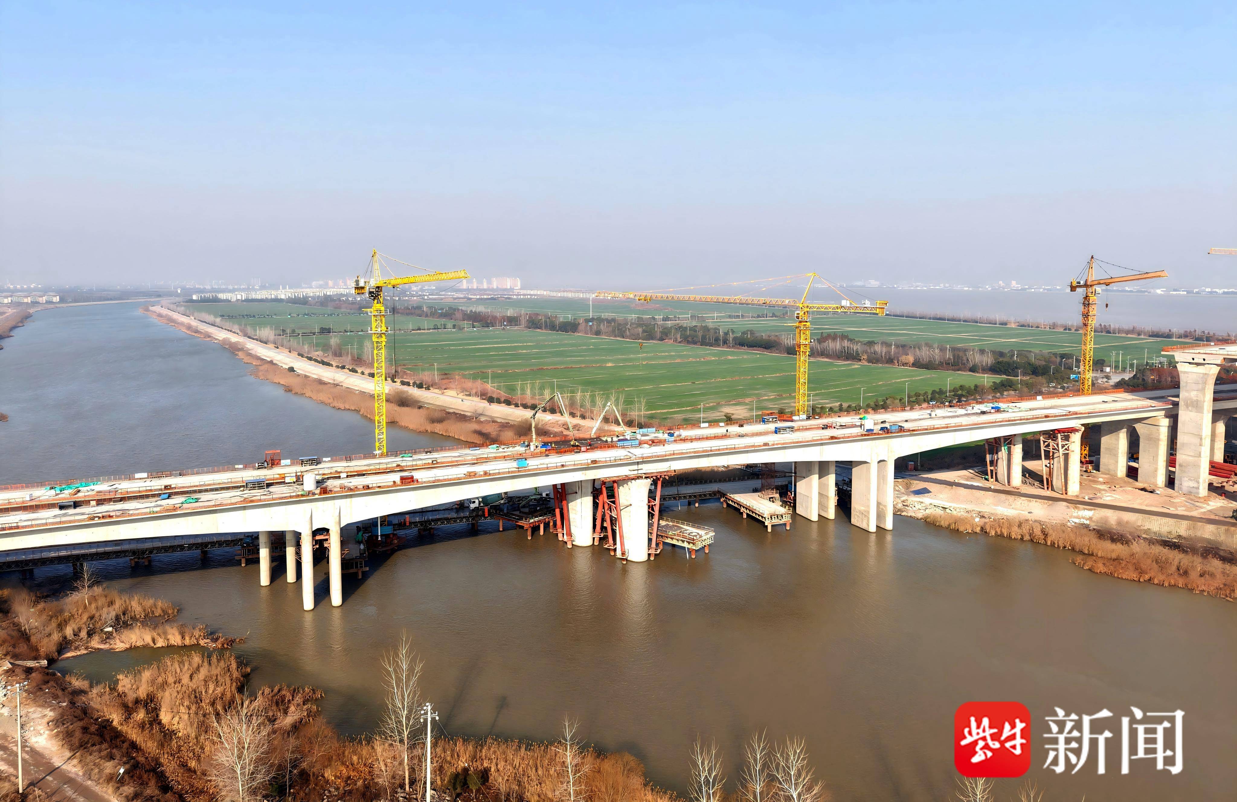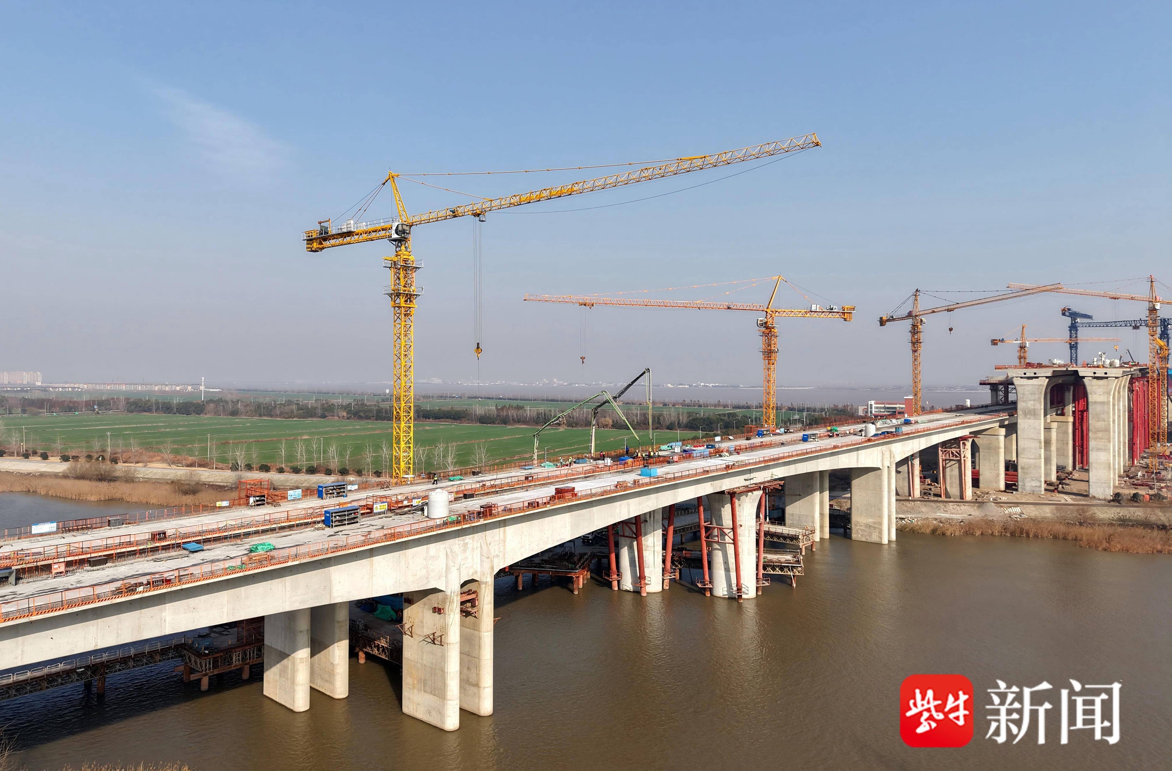 崇启公铁长江大桥南引桥跨南汊河连续梁施工完成