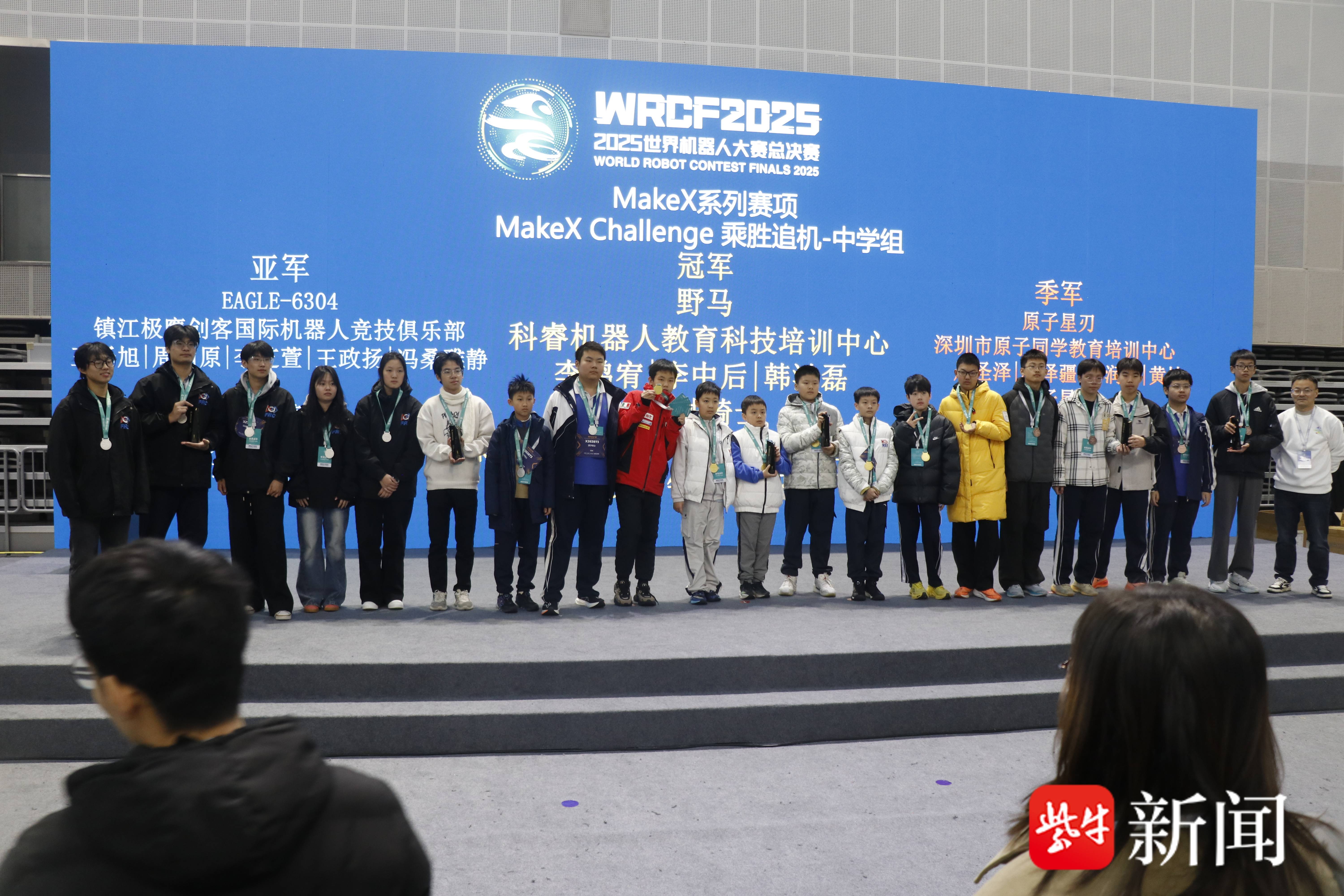 扬子晚报网1月13日讯(通讯员 左文艳 王辰薇 记者 姜天圣)1月6日至7日,为期两天的世界机器人大赛总决赛圆满落幕。全球25000余名青少年创客齐聚赛场,上演了一场科技与智慧的巅峰对决。在这场高手云集的顶级赛事中,镇江高职校(江苏联院镇江分院)机电工程系雏鹰创客中心组建四支参赛队伍、选派13名学生出征,其中EAGLE—6304队在MAKEX Challenge赛项中表现惊艳,历经多轮激烈角逐,最终斩获亚军殊荣。